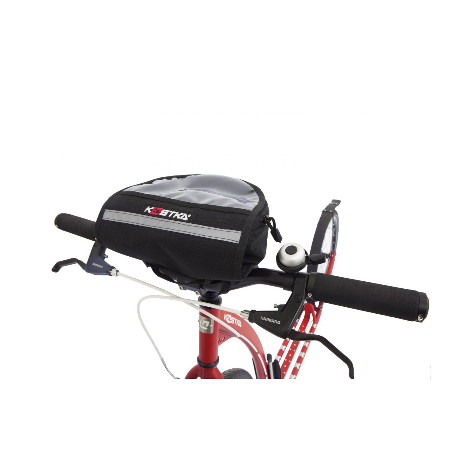 Brašna je upevněná pomocí kovového klipu určeného výhradně pro představec KOSTKA. Velmi rychlou a snadnou montáž umožňuje kovový nýt všitý do spodní strany brašny. Jezdec tak může brašnu kdykoliv z řídítek sejmout a mít ji neustále u sebe.