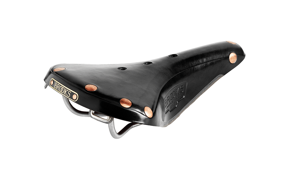 kožené sedlo, titanové ližiny a měděné nýtování