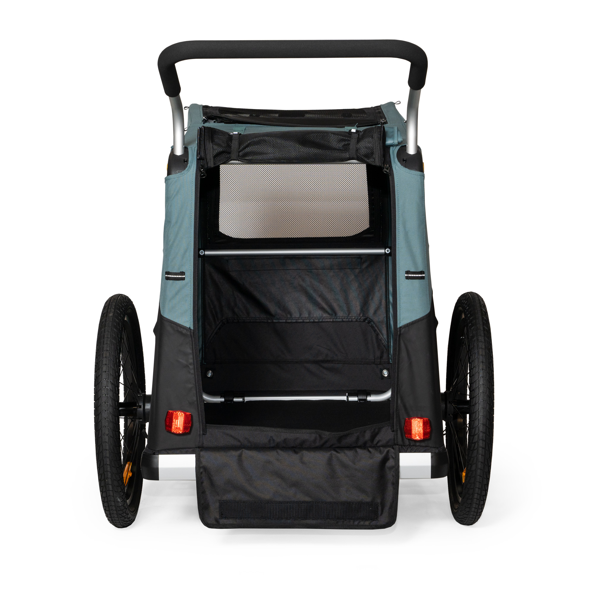 Vozík Bark Ranger XL nabízí pro domácí mazlíčky kombinaci kočárku a vozíku za kolo. Prostorný interiér, vnější kapsy na uložení vodítka a pamlsků, síťovaná okna s výbornou ventilací a velké zadní dvířka pro snadné nakládání a vykládání.