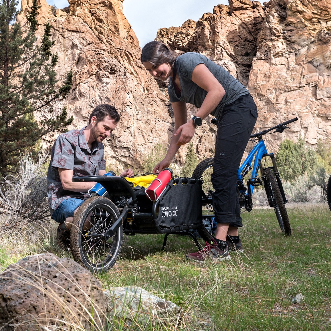 Přívěs Coho® XC s nosností 70 kg a odpružením spirálovými pružinami je terénní přívěs za kolo stvořený pro dobrodružství. Jeho inovativní konstrukce s jedním kolem nabízí vynikající trakci pro všechny cesty od singletracku až po backcountry. Díky promyšleným prvkům, jako je výškově nastavitelný stojan a páka Quick Release, je Coho XC stejně pohodlný jako odolný.