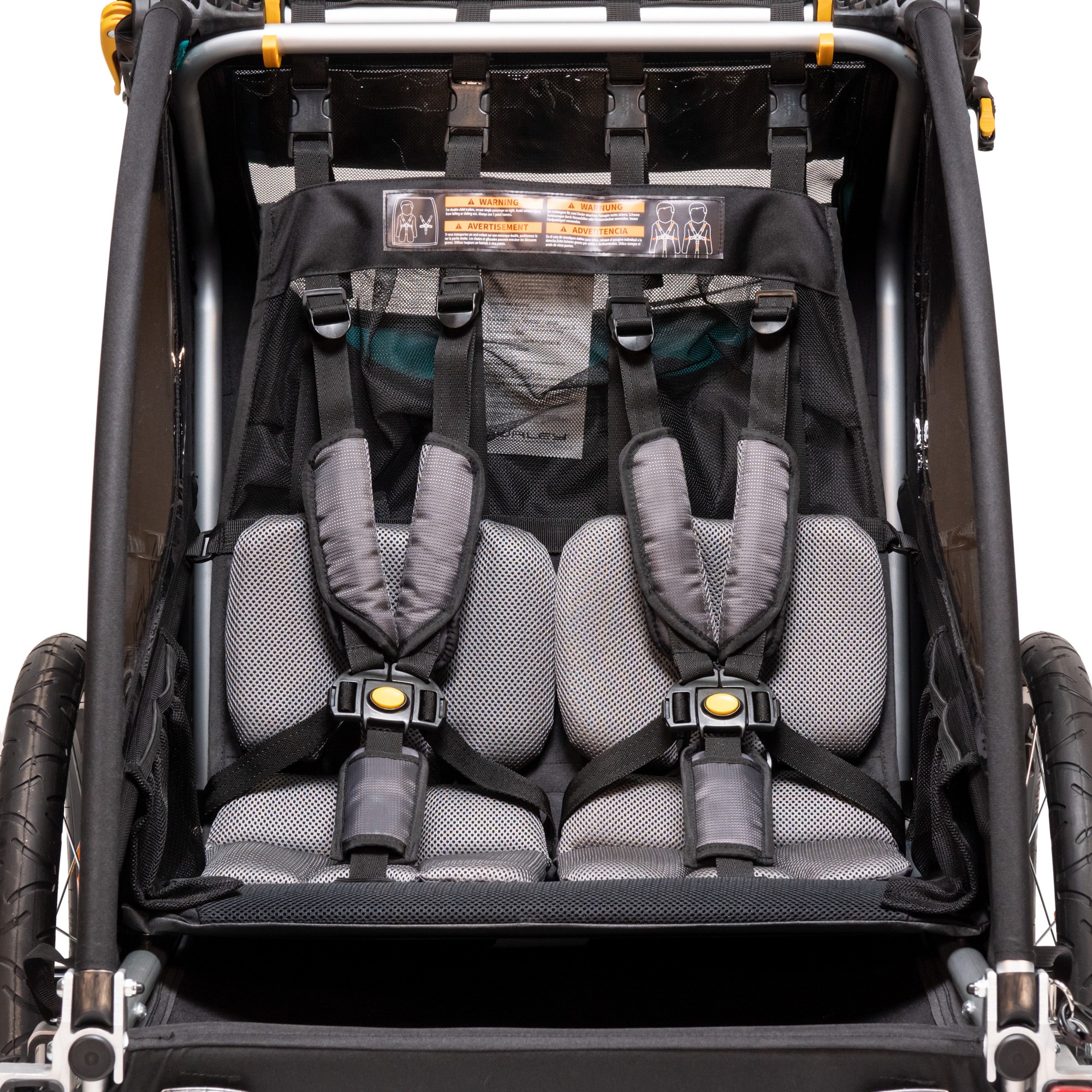 Encore X je perfektním vozíkem za kolo pro aktivní rodiny s jedním nebo dvěma dětmi. S komfortním odpružením a nízkou hmotností je to v jednu chvíli výborný cyklo přívěs a s integrovaným kočárkovým setem je z něj za okamžik obratný kočárek. Encore X je jedním z nejlehčích dvoumístných odpružených vozíků na trhu a lidé jej ocení také díky velkému zavazadlovému prostoru, který má objem 60 litrů. Ovšem v Burley nezapomněli ani na bezpečnost. Tu zajišťuje kromě pevného hliníkového rámu a pětibodových pásů také dostatek reflexních prvků anebo vlaječka. Vozík navíc prošel všemi testy, kterým Burley všechny své vozíky vystavuje, a které jsou přísnější než testy ASTM nebo evropské EN. Tyto certifikace má Encore X samozřejmě také.