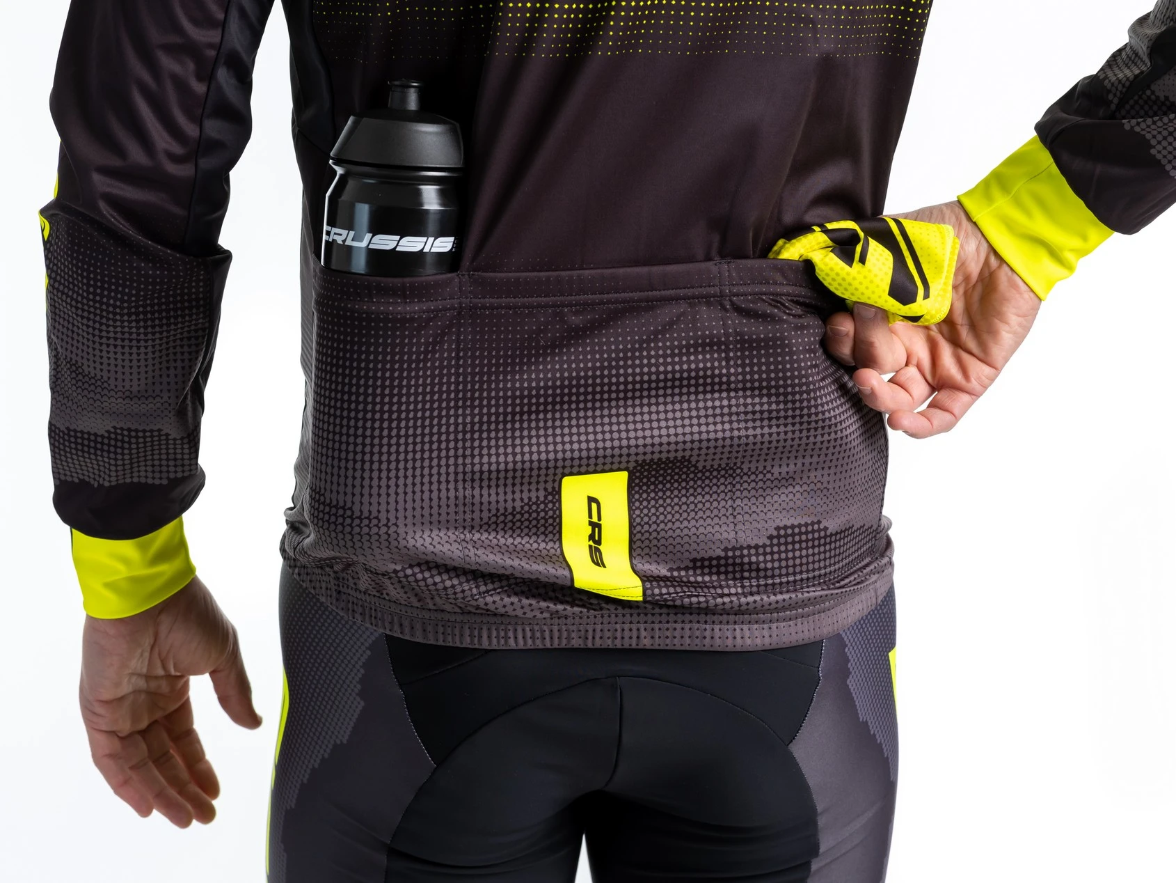 Cyklistická bunda  CRUSSIS je vyrobena z lehkého materiálu NoWind, který má membránu proti vodě a větru. Vodní sloupec 10 000 mm, prodyšnost 24 000 g/m2/24h