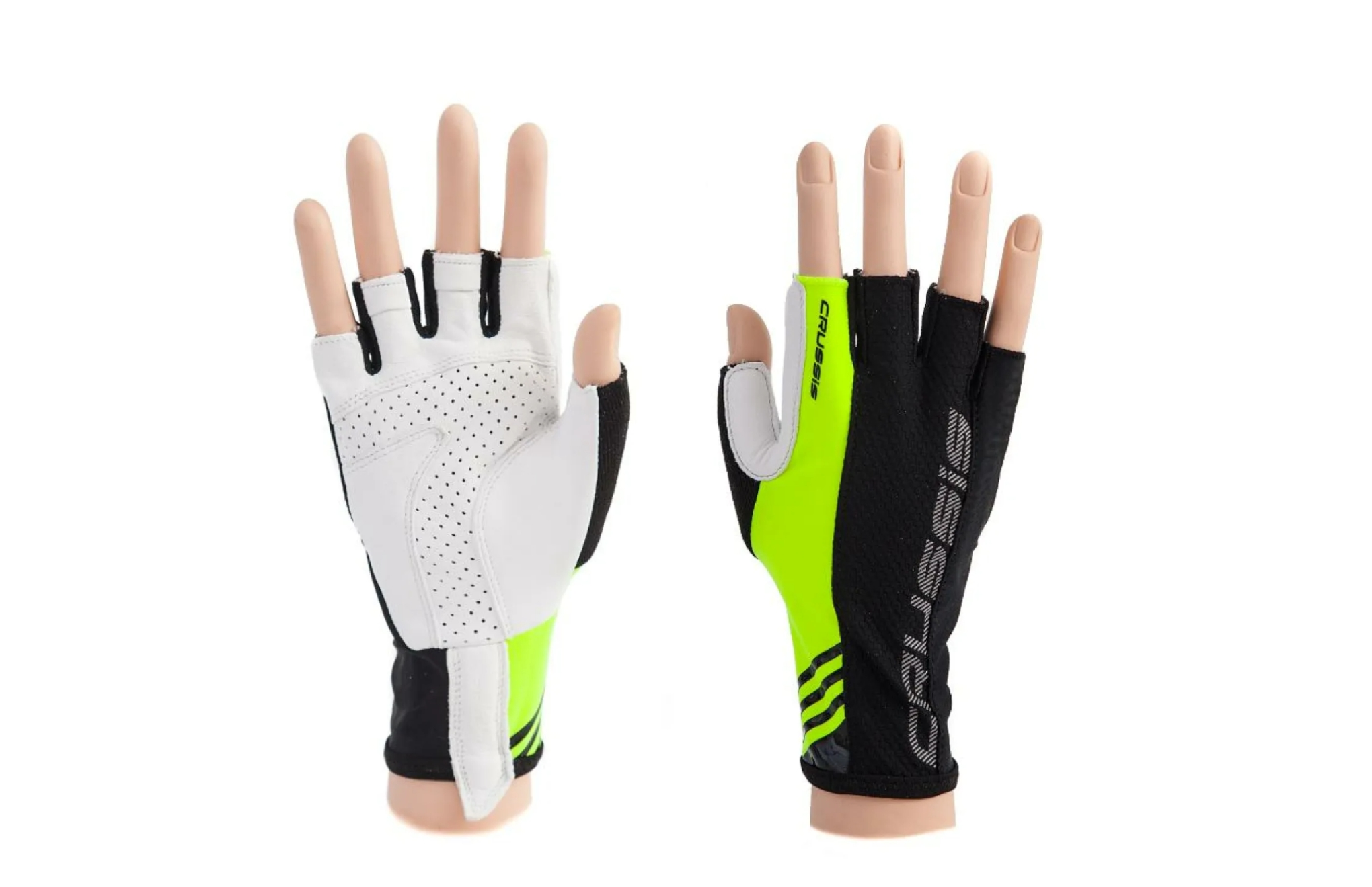 Letní krátkoprsté rukavice Crussis jsou vyrobeny z pružného, prodyšného materiálu a umělé kůže. Díky speciálnímu systému APC (Air Performance Control) je zajištěna lepší cirkulace vzduchu na povrchu rukavic. Vrchní strana je sešitá ze tří dílů, přičemž prostřední díl zajišťuje vysokou prodyšnost. Dlaň se skládá z pěti částí nejjemnější syntetické kůže pro zlepšení přilnavosti a ochraně proti oděru. Na palci je měkčená část na utírání potu. Mezi jednotlivými prsty rukavice je všitý membránový materiál zabraňující nepříjemnému odírání prstů, který naopak celkově dotváří lehký a vzdušný pocit při nošení. Poutka na zápěstí a na prstech umožňují snadné oblékání a svlékání rukavic.