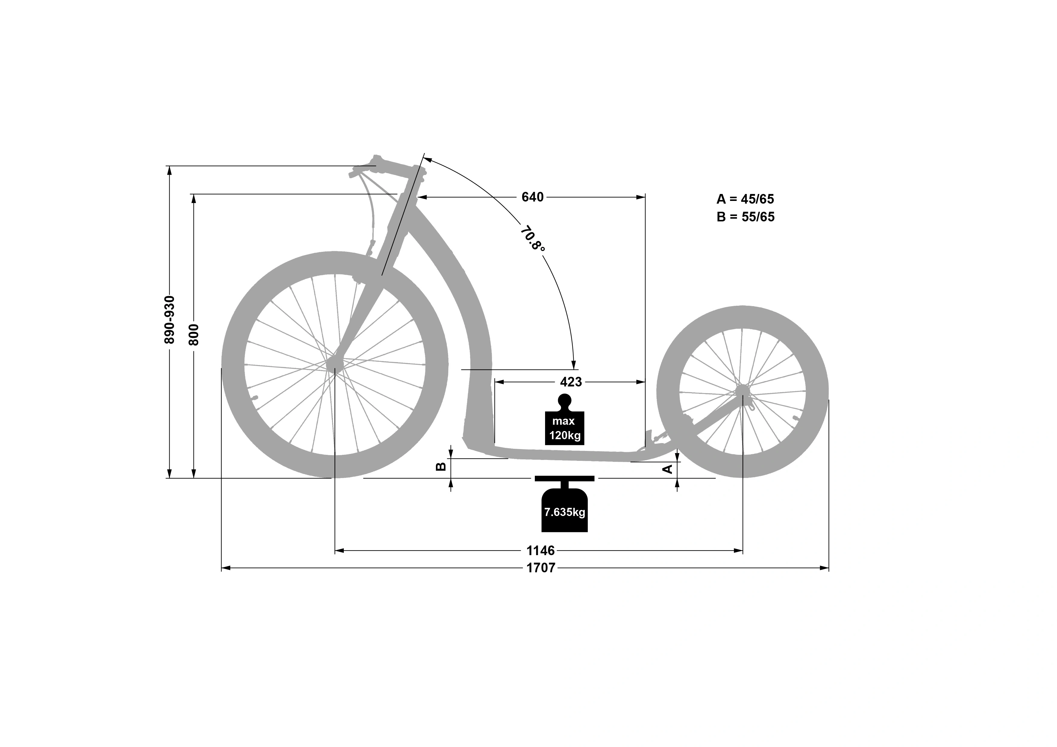 Díky nastavitelné výšce nášlapu se jedná o univerzální koloběžku, se kterou projedete téměř jakýkoliv terén. Pro jízdu na rovném povrchu je ideální 45 mm, ale 65 mm světlé výšky, na které se koloběžka dostane při zvýšení nášlapu, projede prakticky cokoliv.