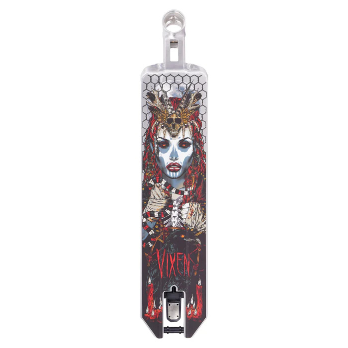 Lehká, pevná deska. Výhodou teto desky je materiál. Je vyrobená z 7000 série hliníku. Takže deska je odolnější. Doporučujeme všem náročnějším park jezdcům. Novinka této řady je krk desky. Ten je z jednoho kusu. Díky tomu deska je pevnější. Fender OFF brzda je skvělá kombinace pružné a nepružné (pevné) brzdy. Můžete se rozhodnout jeslti chcete jezdit Flex fender nebo fender. Tento systém má pouze Triad.