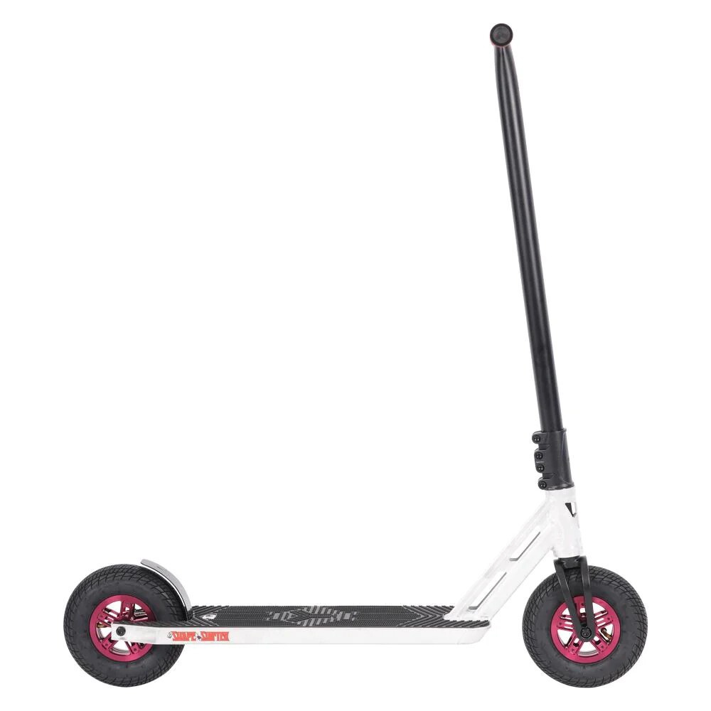 Díky velkým nafukovacím kolům, široké desce a bytelnému rámu zvládne tato koloběžka i náročnější terén a dopady. Ocelová řídítka a pevná vidlice dávají riderovi plnou kontrolu při každém odrazu i dopadu. Jde o ideální volbu pro jezdce, kteří milují adrenalin mimo asfalt.