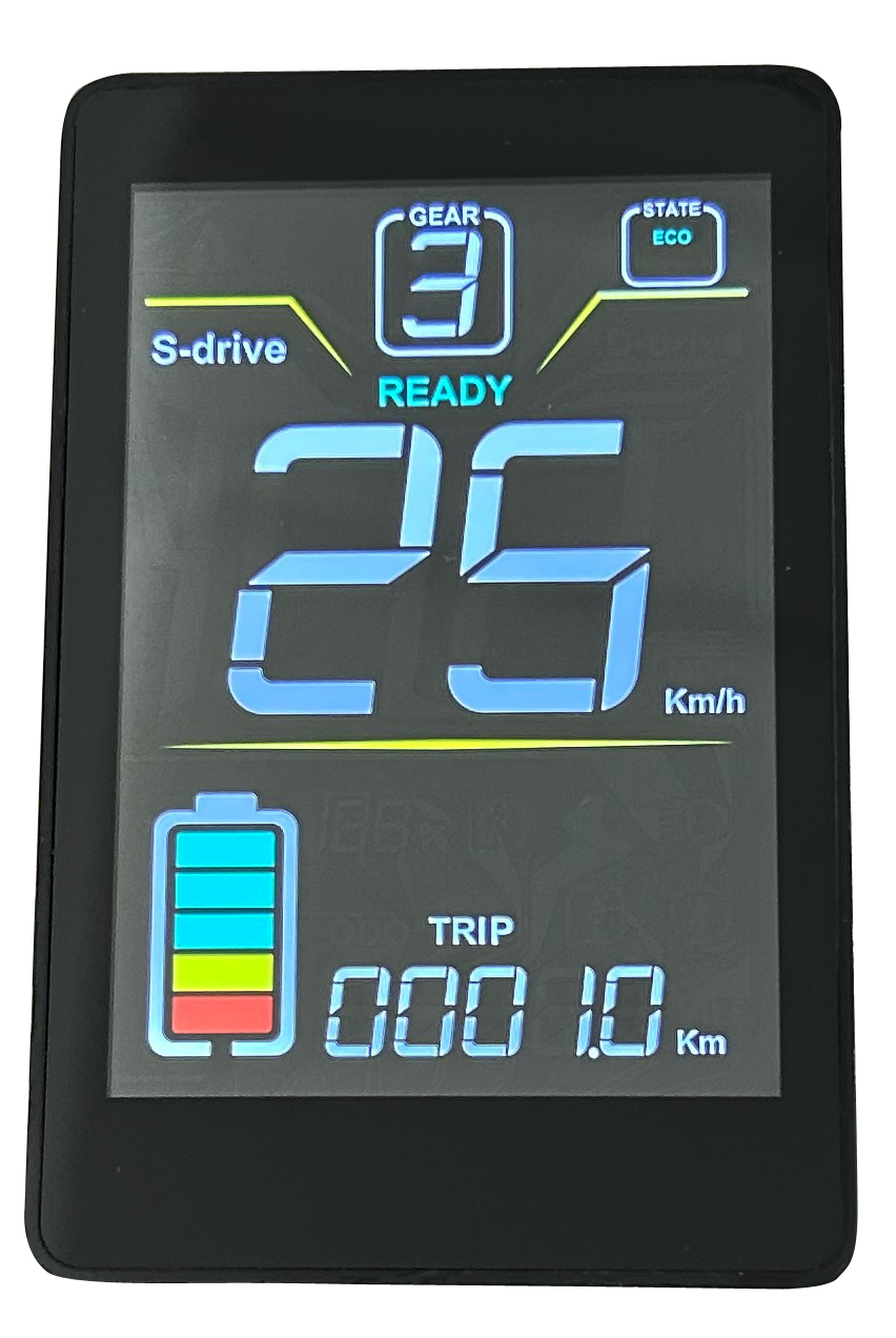 Na přehledném barevném LED displeji, který je dobře viditelný i na přímém slunci, se zobrazují všechny potřebné údaje jako jsou stav baterie, aktuální rychlost či ujeté kilometry.