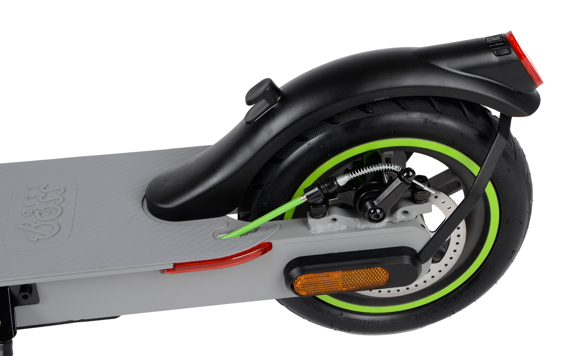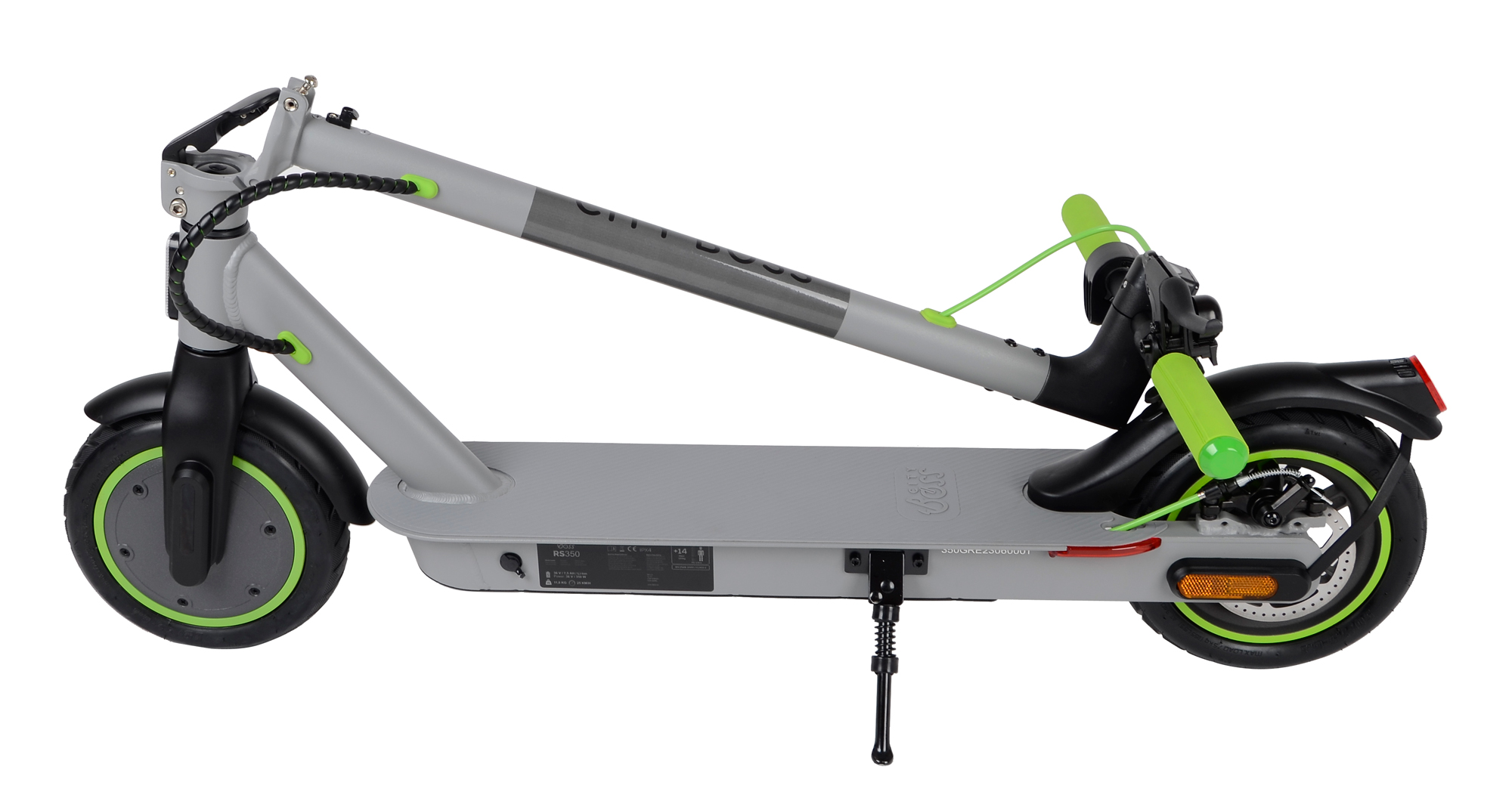 Elektrická koloběžka City Boss RS350 vás úsporně dopraví do práce, do školy, po městě či na výlet. Obě 8,5″ zesílené nafukovací pneumatiky snižují možnost defektu a významně tlumí vibrace při jízdě po nerovných cestách.