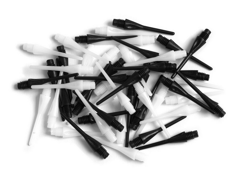 Balení obsahuje 100 hrotů Dimple 2BA pro softové šipky v černé nebo bílé barvě. Délka hrotu (bez závitu) je 26 mm. Dodáváno v papírové krabičce.