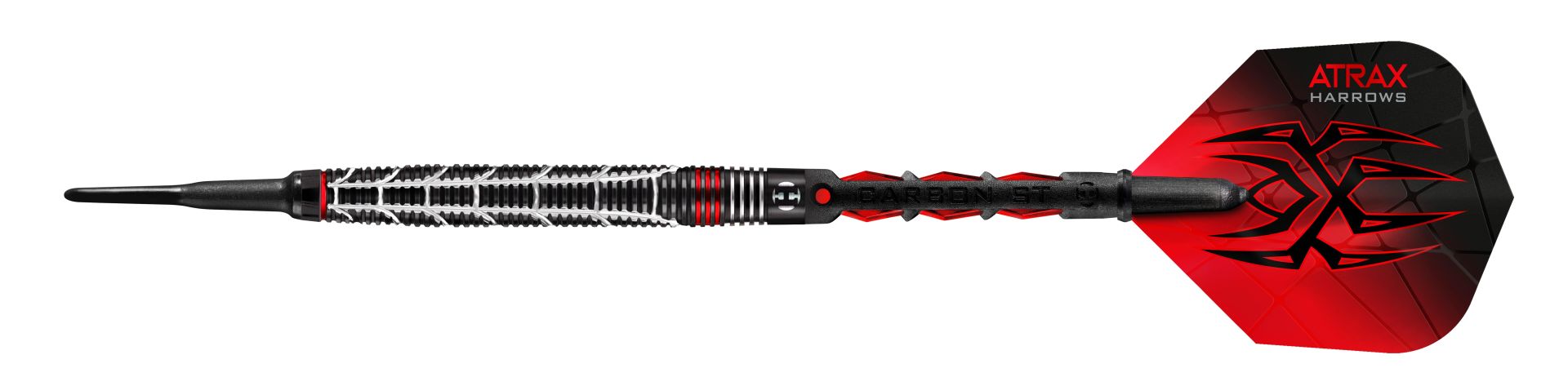 Uhrančivý vzor ve stylu Atraxe (pavouk z rodu sklípkanů) byl vyfrézován na prvotřídních CNC strojích. Černá, odolná vrstva nitridu titanu spolu s metalickou červení podporují podmanivý vzhled těchto šipek.