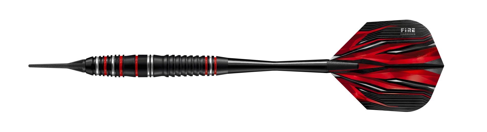 Šipky Fire High Grade Alloy, které jsou inspirované wolframovými šipkami Fire Inferno, mají odolnou černou povrchovou úpravu doplněnou výraznými stříbrnými a červenými prstenci.