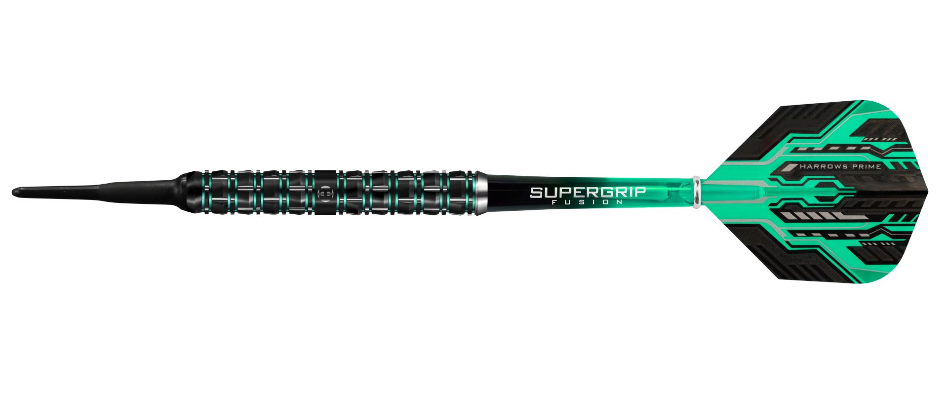 Tyto mimořádné šipky doplňují násadky Black/Jade Midi Supergrip Fusion a nové letky Prime.
