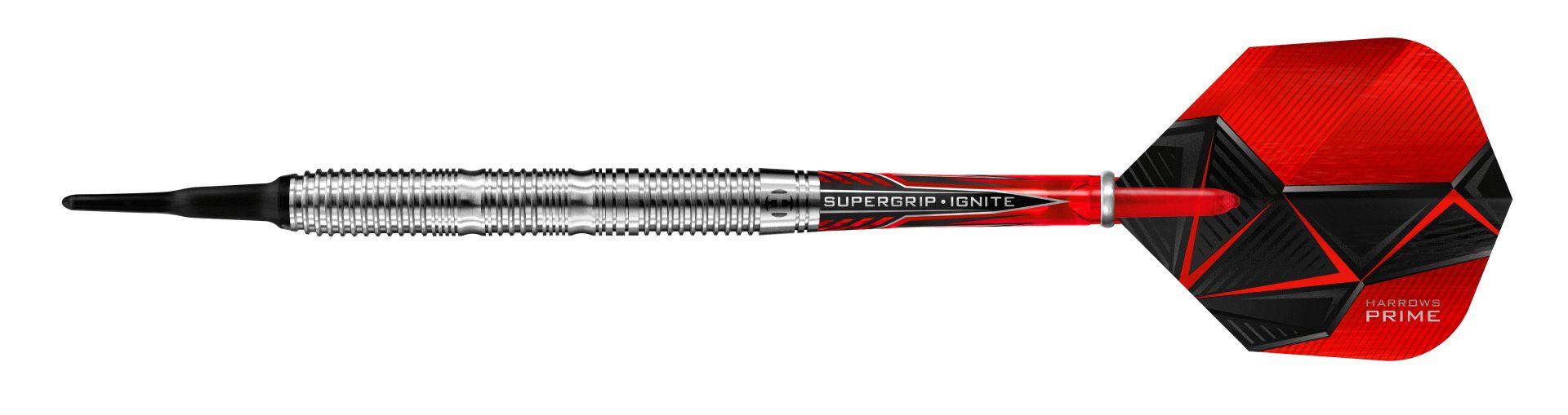 Šipky Rival 90% jsou dodávány spolu s násadkami Red Supergrip Ignite Midi a novými 100mikronovými letkami Prime.