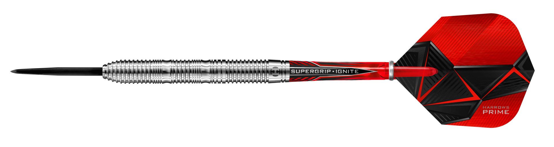 Šipky Rival 90% jsou dodávány spolu s násadkami Red Supergrip Ignite Midi a novými 100mikronovými letkami Prime.