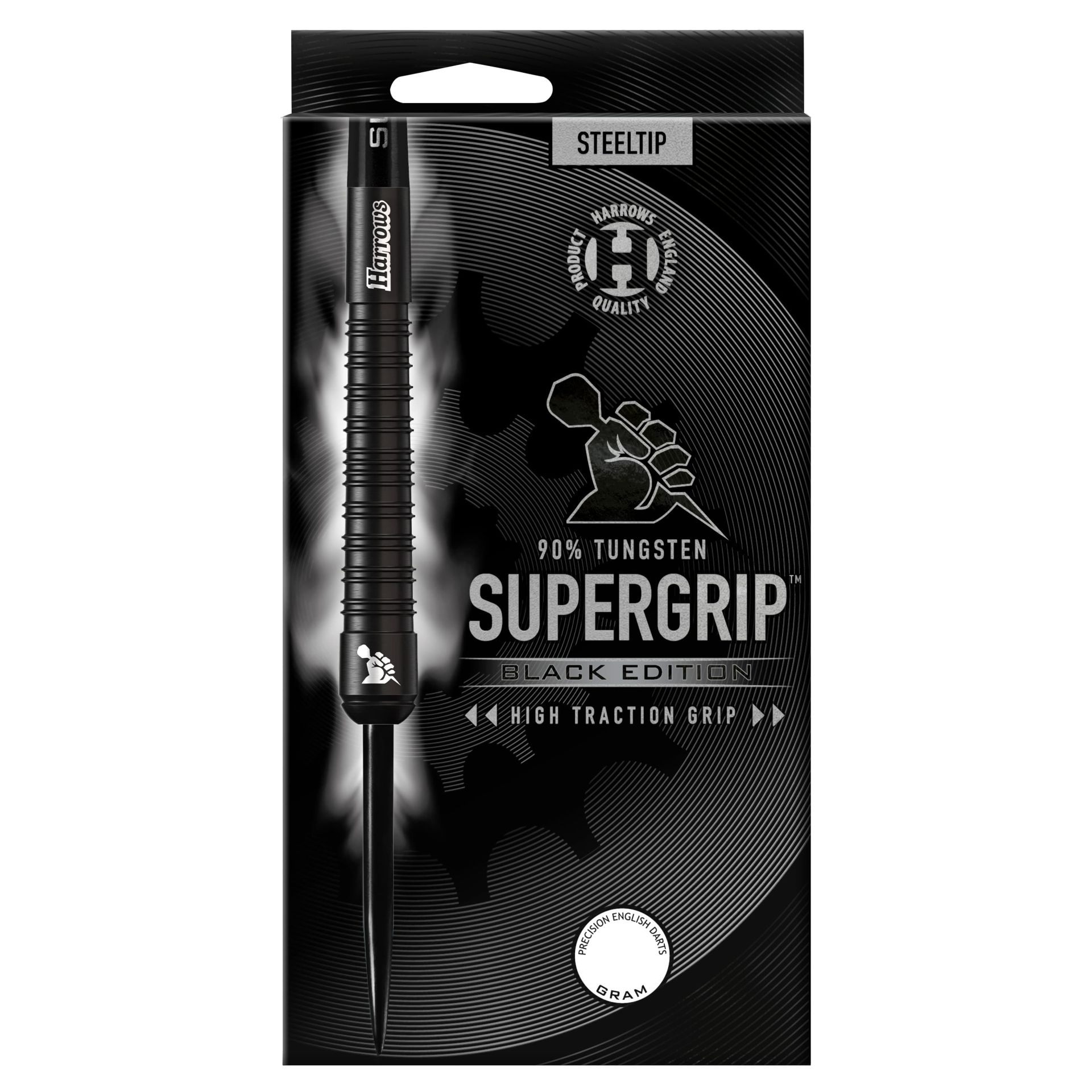 Šipky Supergrip vyrobené z 90% wolframu jsou designované na míru profesionálům, kteří vyžadují drsnější povrch, s ním dokáží lépe udržet konzistentnost svých odhozů. Inovovaný model v černé edici je doplněn robustními násadkami a černo stříbrnými letkami.