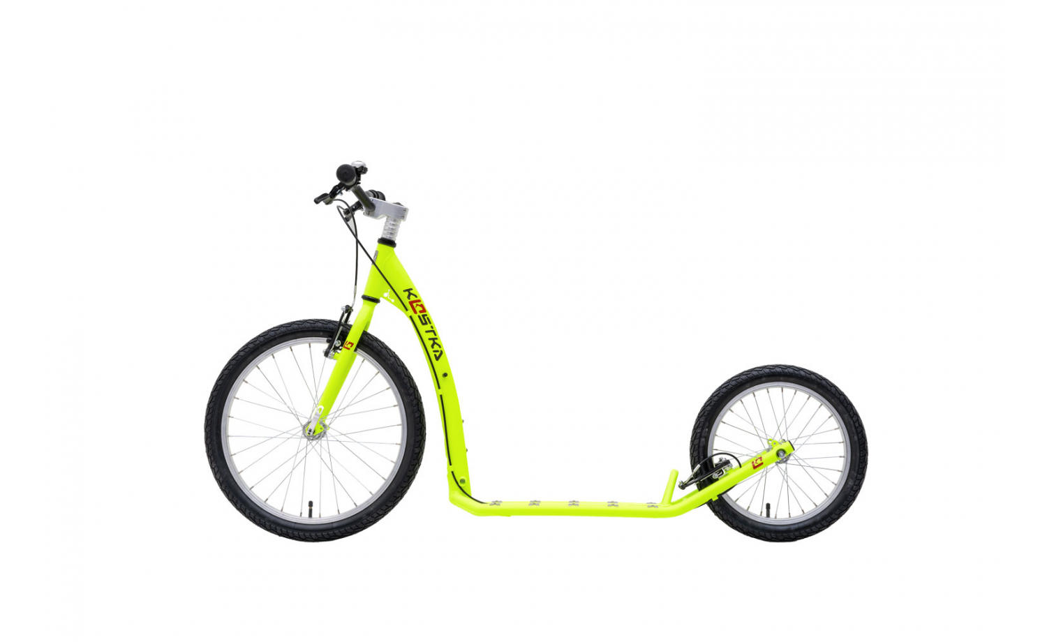 Koloběžka je vybavena plášti Mitas Walrus. Koloběžka pro mladé začátečníky Za málo peněz hodně muziky… Pokud s koloběhem teprve začínáte a nechcete do nového stroje investovat majlant, KOSTKA HILL FUN KID (G5), koloběžka do 100 kg, je pro vás výbornou volbou. Aby nedošlo k mýlce… Tato koloběžka pro dospívající děti a dospělé je cenově přijatelná, přesto dotažená do posledního detailu. Stejně jako v případě všech ostatních koloběžek KOSTKA jsme si při její výrobě dali záležet, proto se vyznačuje precizním dílenským zpracováním. Koloběžka HILL FUN KID (G5) je vybavena řidítka KOSTKA FBH 580-50 St, která v případě toho, že vaše dítko odroste jednoduše vyměníte za řidítka vyšší a koloběžka tak vydrží s dítětem až do dospělosti. Koloběžka KOSTKA HILL FUN KID svou výbavou plně odpovídá požadavkům začínajícího koloběžkáře a její jízdní vlastnosti vás velmi mile překvapí. Vše začíná u vyladěné geometrie rámu, která zaručuje pohodovou a ničím nerušenou jízdu. Na jednokomorových ráfcích, obutých do plášťů Mitas Walrus, si doslova ujedete a véčkové brzdy Promax vás zase bez problémů zastaví. V případě, že budete koloběžku například převážet autem, jistě oceníte hliníkové náboje s rychloupínáky, díky nimž lze kola koloběžky snadno odmontovat a zmenšit tak její rozměry. Garantujeme, že vás levná koloběžka KOSTKA HILL FUN KID ani přes svou poměrně nízkou cenu nezklame. Proto nečekejte a odrazte se vstříc lásce ke koloběhu. Věříme, že pohled na svět z nášlapu koloběžky vám v mžiku a navždy přiroste k srdci.