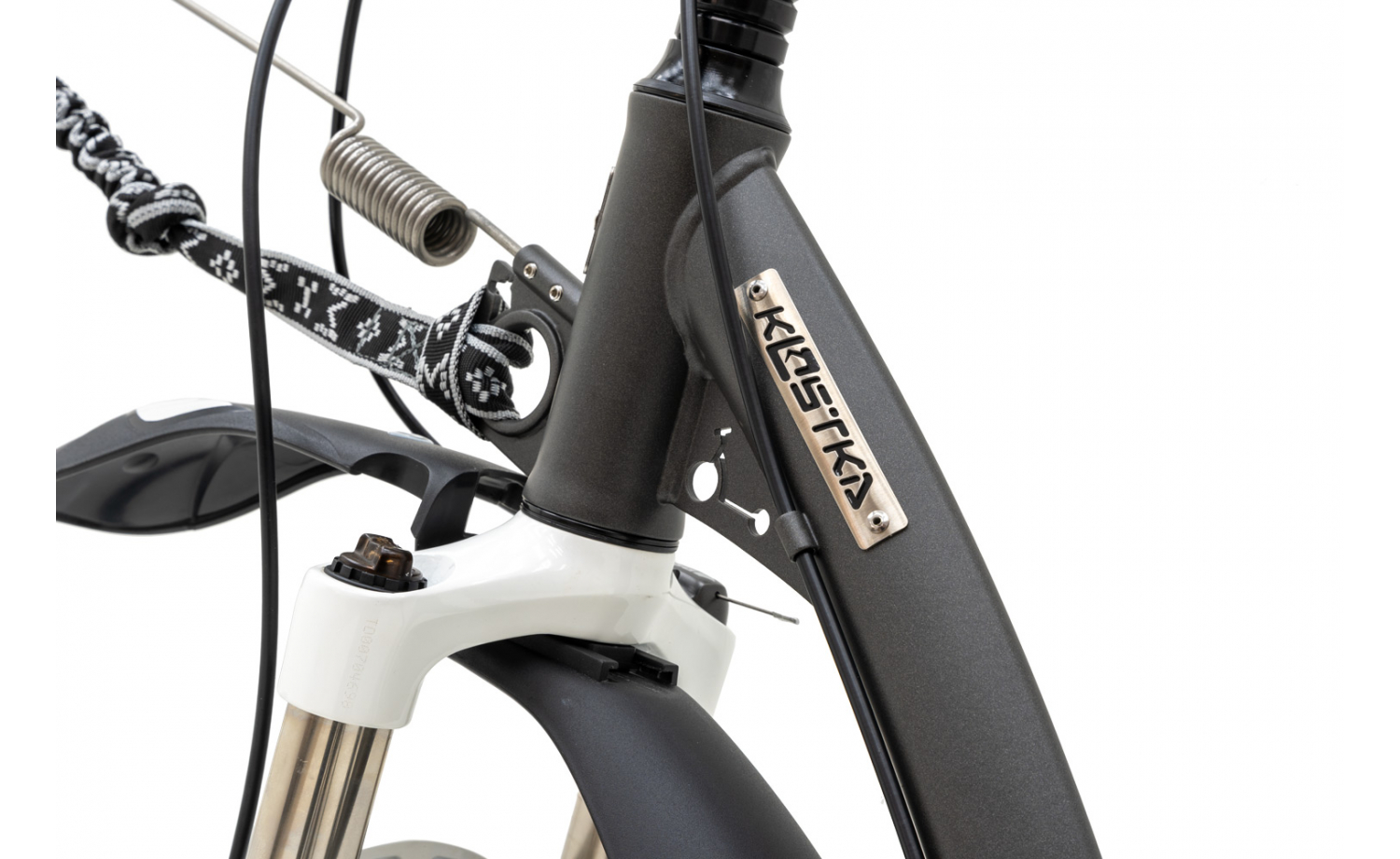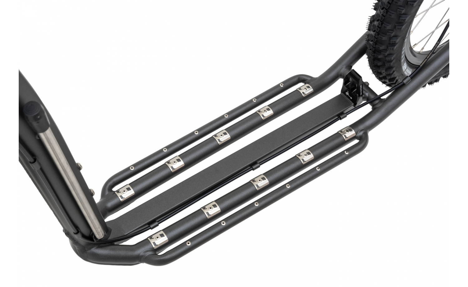 Koloběžka na mushing a extrémní sjezdy S koloběžkou KOSTKA MUSHING PRO vždy na doraz, přesto komfortně, rychle a precizně. Ať už vyrazíte s vašimi čtyřnohými tahouny za dobrodružstvím bez hranic, nebo se vydáte na cesty sami, tato mushing koloběžka vás nikdy nezklame. Kromě toho, že je výbornou koloběžkou pro sportovní mushing, je rovněž optimalizována pro rychlostní jízdu v náročném terénu a pro extrémní sjezdy bez psa. Takže až s ní vjedete na prašnou lesní cestu plnou kořenů a kamení nebo to pustíte ze svahu dolů, koloběžka KOSTKA MUSHING PRO bude jen vrnět blahem. A stejně tak vy… V drsných podmínkách budete naplno těžit z vytříbených jízdních vlastností, které stojí na vychytané kombinaci jednotlivých detailů. Komponenty vyšší kategorie společně utváří dokonalý celek v podobě této koloběžky do terénu, s níž si užijete přemíru nespoutané zábavy. Při jízdě z kopce a po nerovnostech oceníte upravenou geometrii, která celkovým způsobem zlepšuje jízdní charakter a ovladatelnost. Díky tomu se KOSTKA MUSHING PRO řadí mezi hbité a obratné terénní koloběžky. Přední odpružená vidlice odtlumí i ten nejbrutálnější terén, proto se každá jízda promění v komfortní let bez nežádoucích turbulencí. Rozšířený protiskluzový nášlap, umožňující stání sounož, je ze spodní strany opatřen speciálními sváry a výztuhou. Při styku s nerovnostmi chrání tyto prvky rám koloběžky proti opotřebení a současně zvyšují jeho tuhost. Až to budete chtít pořádně roztočit, jsou vám plně k dispozici kola na dvoustěnných ráfcích Dragon, osazená extrémně tuhými náboji KOSTKA HK 1024 DS, vyvinutými speciálně pro koloběh. Model KOSTKA MUSHING PRO je koloběžka s kotoučovými brzdami Shimano 615. Díky tomu zastavíte i rozdováděného malamuta, a to i v situacích, kdy ráfkům kol dopřejete pořádnou bahenní lázeň. V podobně extrémních podmínkách vás vždy podrží i prémiové pláště Schwalbe Nobby Nic 26" a Mad Mike 20", které neuhnou za žádných okolností.Při vývoji koloběžky KOSTKA MUSHING PRO jsem nemysleli jen na samotné jezdce, ale i na jejich zvířecí parťáky. Abyste mohli hafana rychle a bezpečně zapřáhnout, je koloběžka dodávána včetně pružného adaptéru a vodítka. Stačí tedy jen opatřit vhodný postroj a můžete se společně s pejskem vydat na cestu plnou radosti a naplno prožitých chvil. Koloběžka KOSTKA MUSHING PRO je standardně dodávána v odstínu Mystic Grey a Mystic Copper. Pokud vašemu oku více lahodí jiná barva, kontaktujte nás na e-mailu dotazy@kolobka.cz. Určitě se domluvíme.