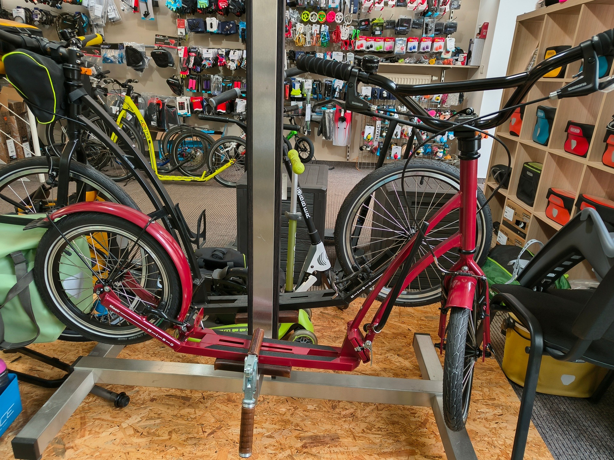 Skládací koloběžka MIBO Mastr, vhodná pro uchycení dětské sedačky. Ideální do města i na kratší vyjížďky. Prakticky nezničitelná ocelová konstrukce s nosností 150 Kg. Jedna z našich nejprodávanějších koloběžek. Disponuje bytelným a přitom jednoduchým skládacím mechanismem, kterým jsou vybaveny všechny rožnovské skládačky – Mastr, Royal i Split. Potřebujete slož do vlaku, autobusu, kufru auta, rohu kanceláře či pod postel? Zvládnete v řádu vteřin. A můžete si dokoupit i originální vak, aby byla koloběžka kompaktnější a nic neušpinila.