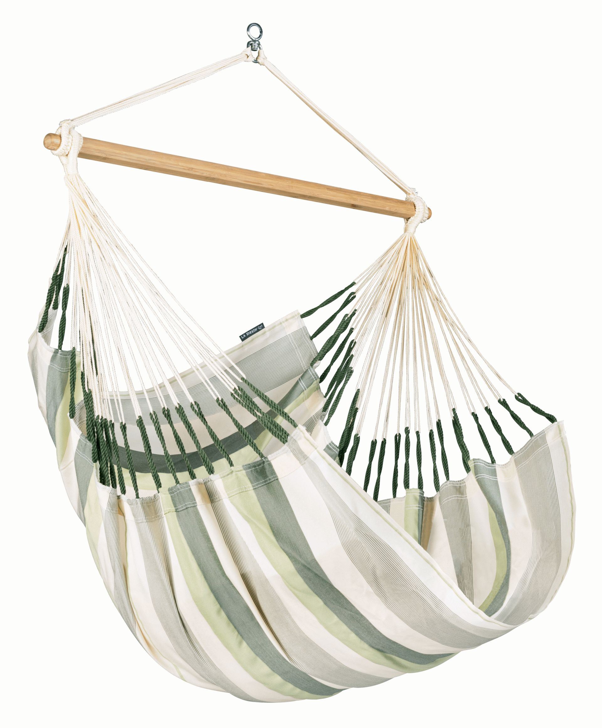 Vydrží intenzivní zatížení (až 130 kg) stejně jako rozmary počasí. Funkční tkanina, vyvinutá přímo na míru houpacím sítím a sedačkám, je příjemná na dotek, rychle schne a snadno se udržuje. Vysoký počet závěsných vláken zaručí rovnoměrné rozložení váhy, integrovaný pojistný čep zase bezpečnou 360° rotaci.