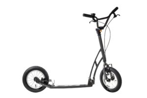 Malá skladná koloběžka se dvěma 12″ koly a osvědčeným systémem skládání rámu.
