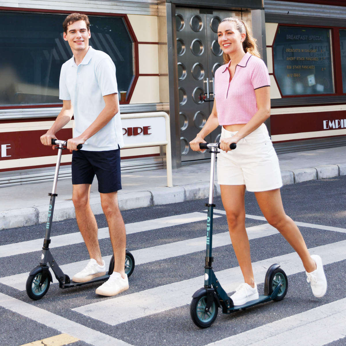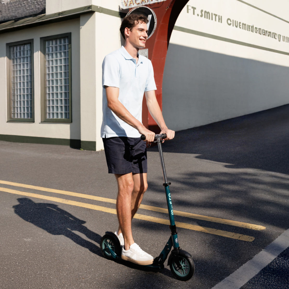 Skládací koloběžka Micro Classic s novými NanoGrid kolečky pro maximální jízdní komfort bez huštění a defektů. Stylová tmavě zelená varianta.