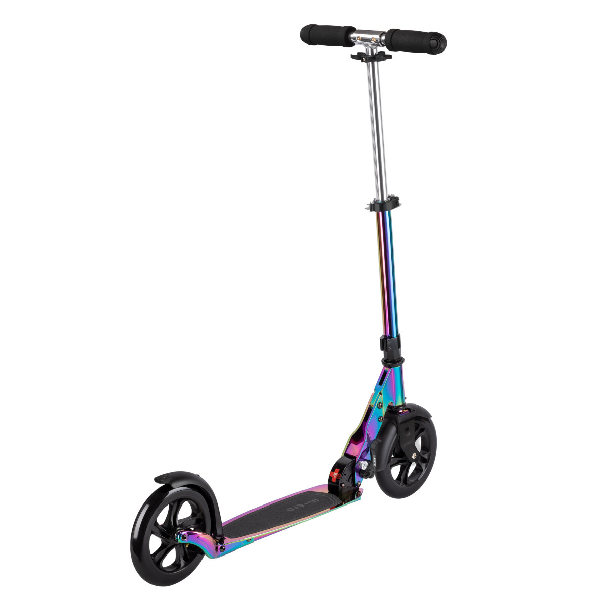 Micro Classic Neochrome je rychlá skládací koloběžka i pro delší vzdálenosti. Nízko posazená deska pro pohodlnou ergonomickou polohu. Koloběžka je v neochromovém duhovém provedení.