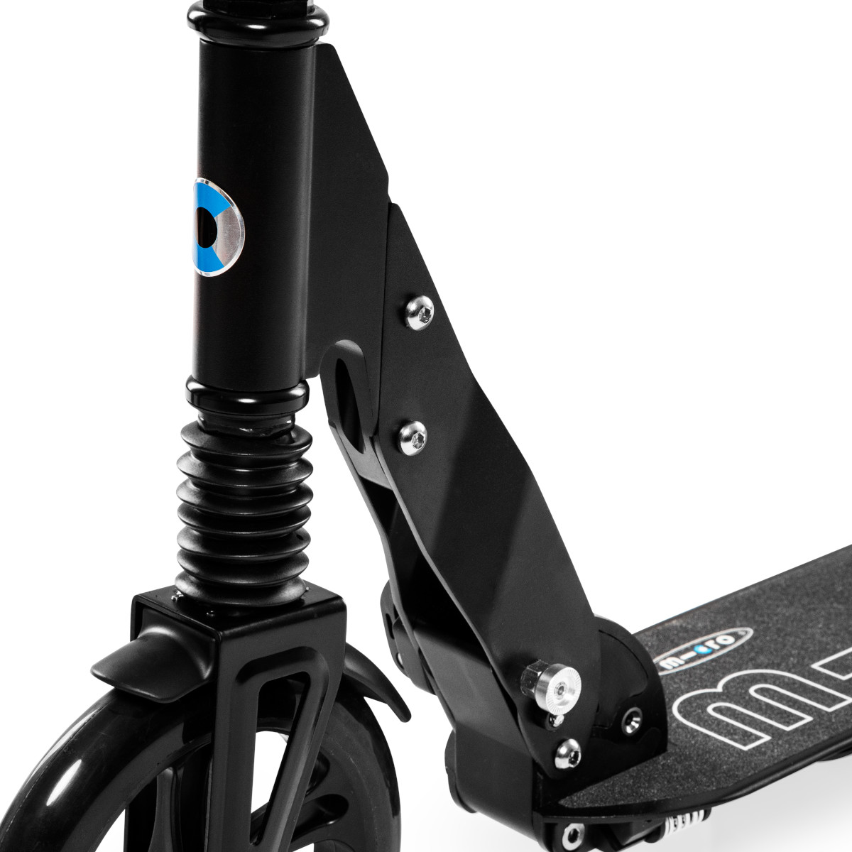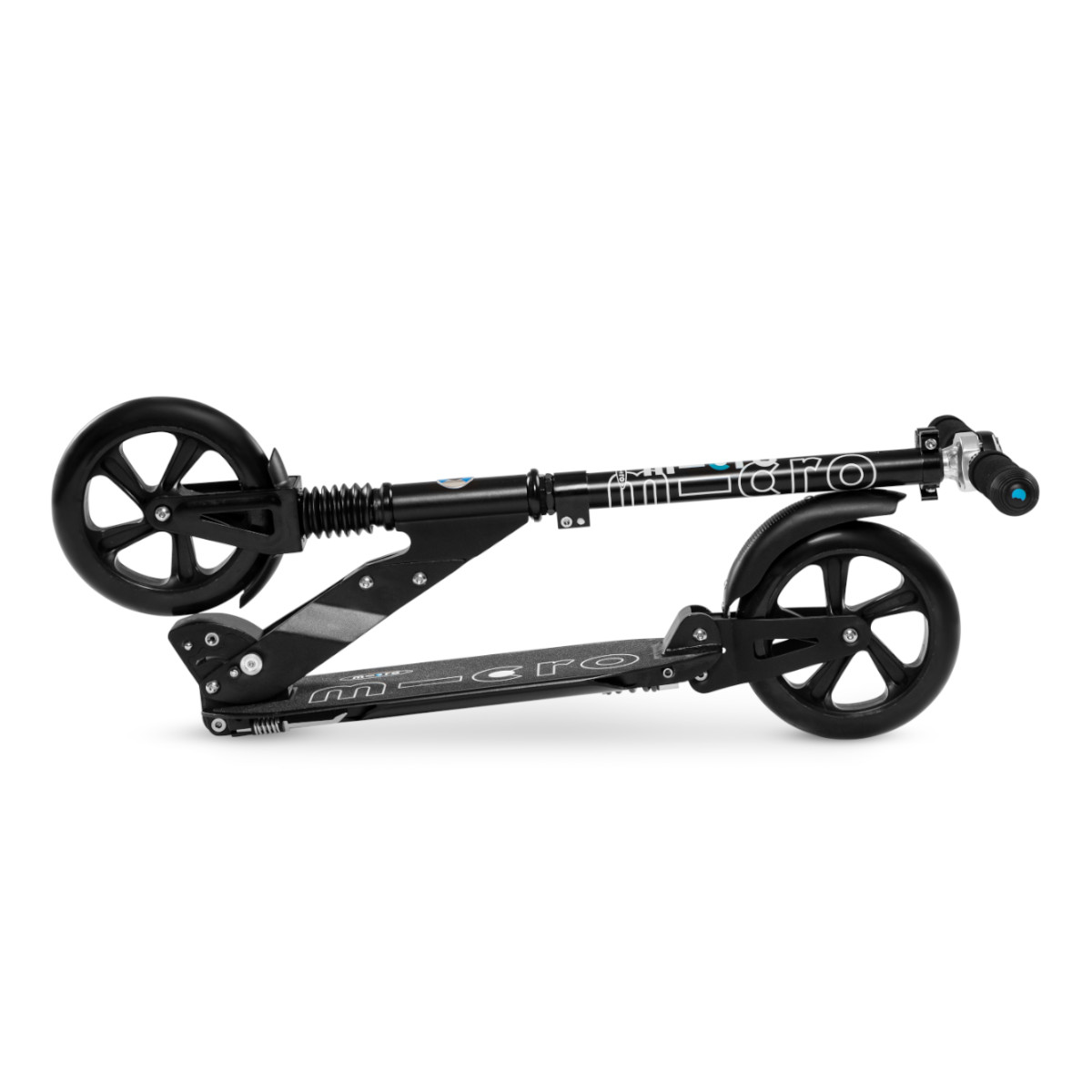 Micro Suspension Black je rychlá, komfortní a dynamická celoodpružená skládací koloběžka v černé barvě s 200 mm kolečky.