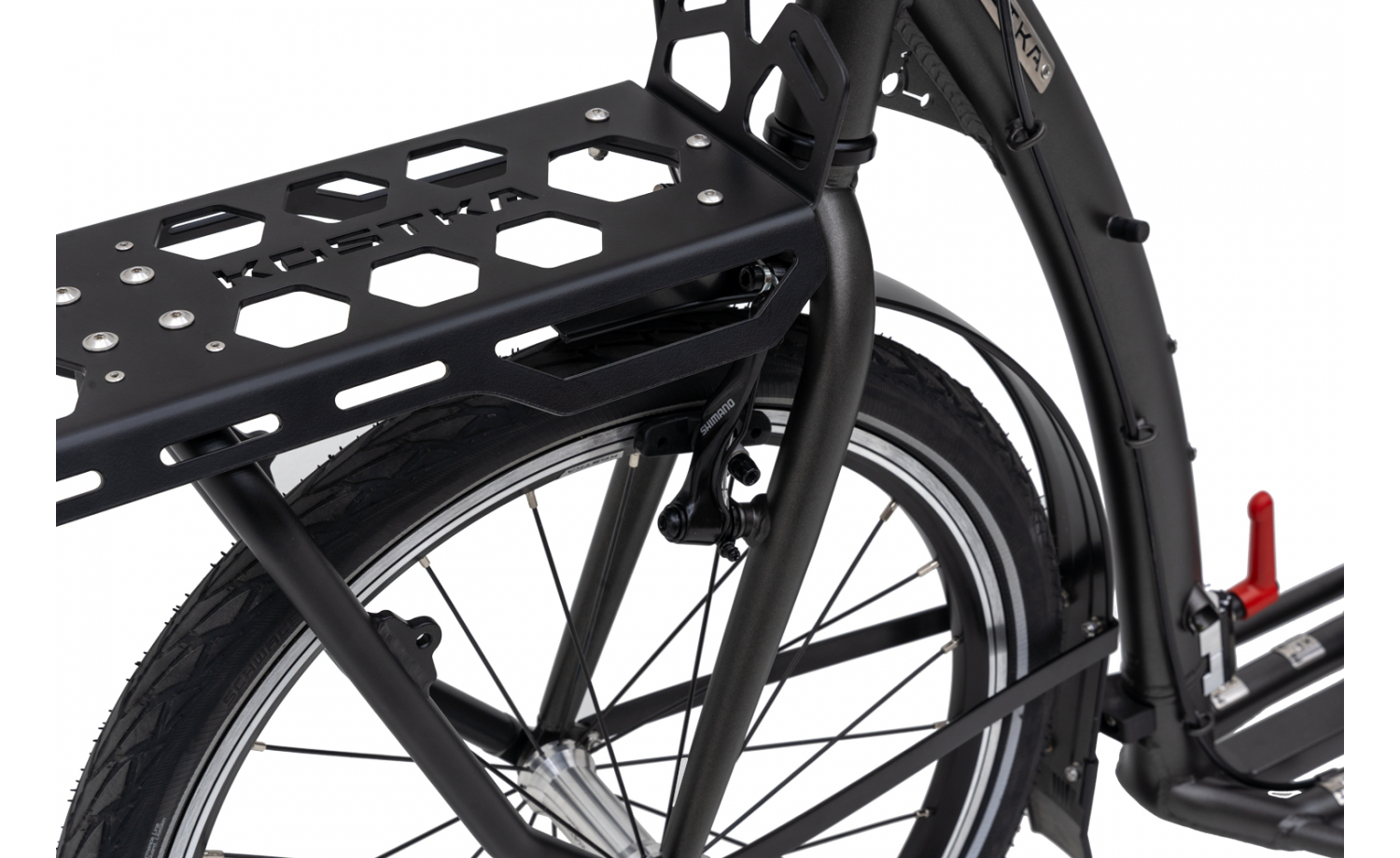 Maximální bezpečnost zajišťují kvalitní brzdy SHIMANO, zatímco náboje KOSTKA s průmyslovými ložisky NTN Japan poskytují optimální komfort při jízdě. Technické parametry odpovídají osvědčené řadě KOSTKA MAX.