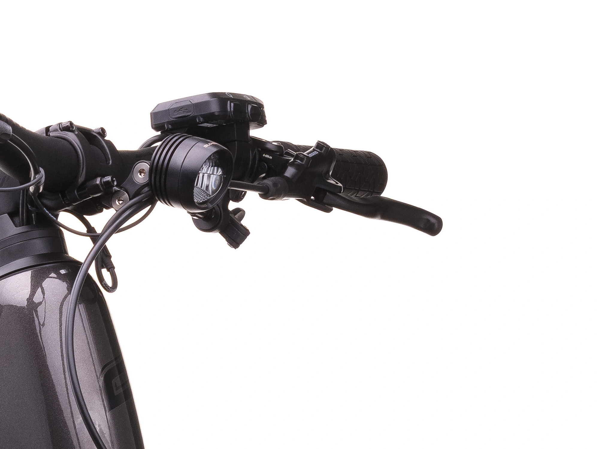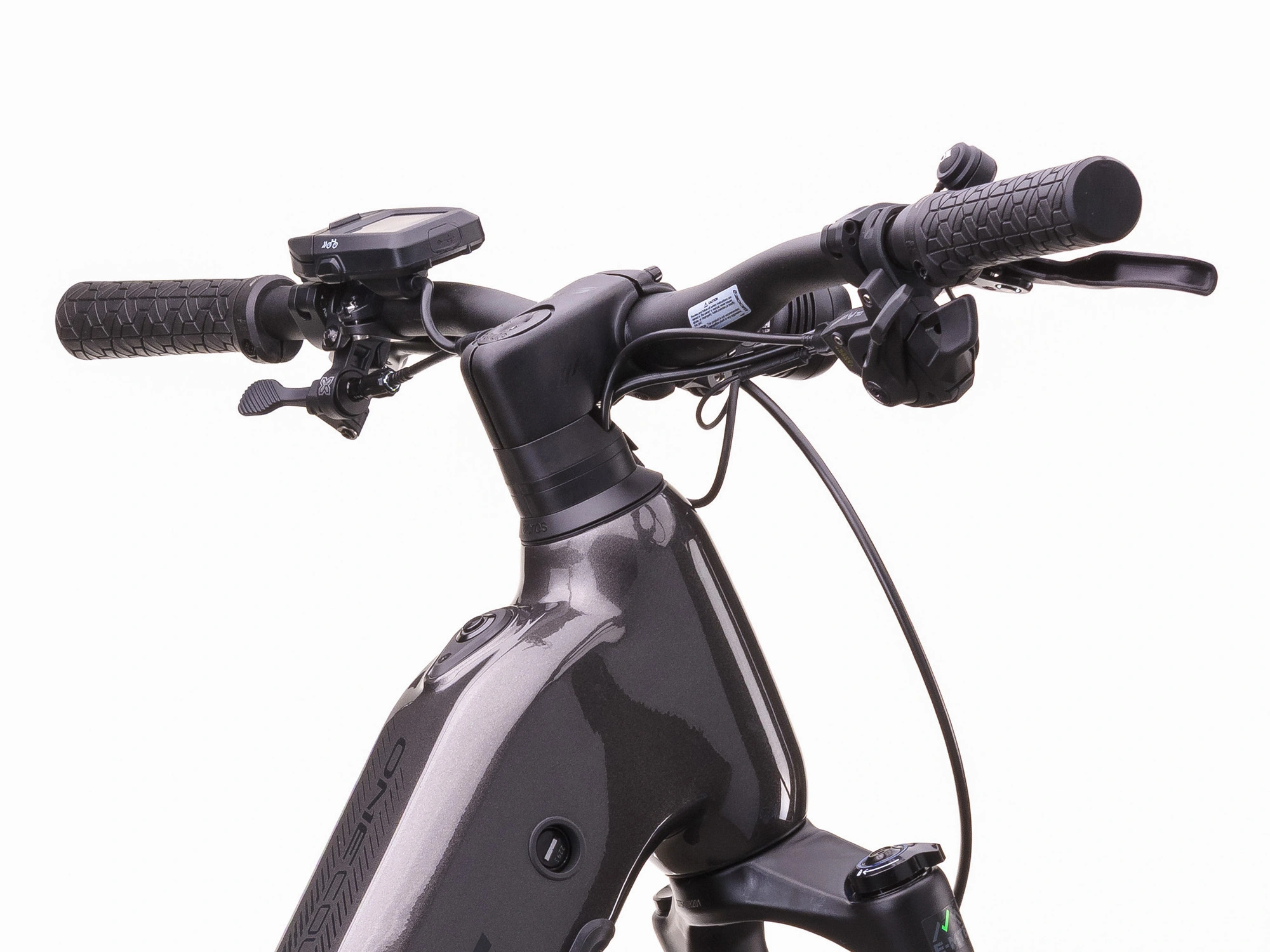O přesné řazení se stará SRAM T-Type Eagle (1×12) a spolehlivé zastavení i v náročných podmínkách obstarávají hydraulické brzdy SHIMANO Deore. Barevný LCD displej PANASONIC přehledně zobrazí všechny klíčové údaje o jízdě.