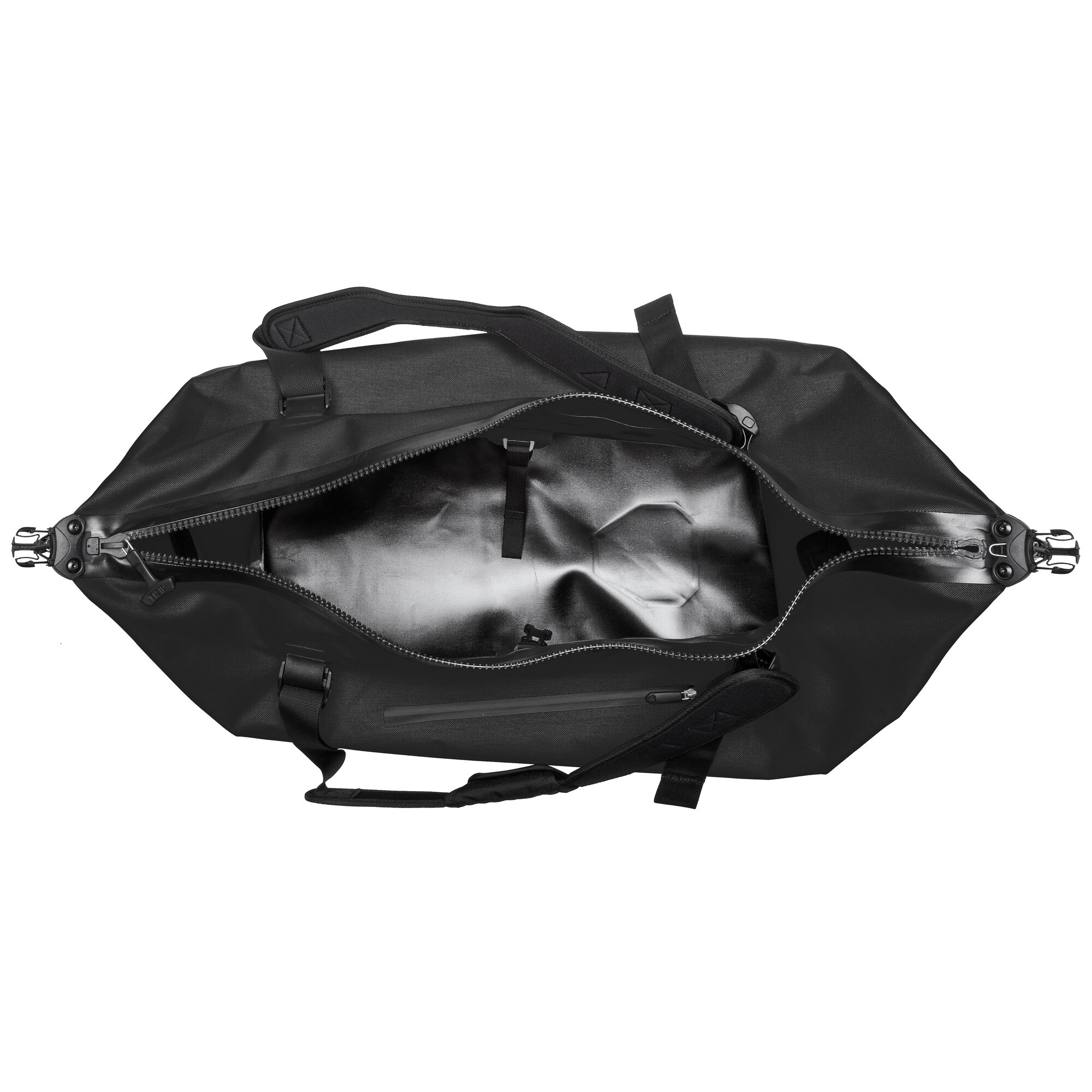 Díky dlouhému zipu se tato praktická taška snadno otevírá a nabízí optimální přístup do jejího vnitřku. Zipy lze zajistit přezkou a popruhem a také pomáhají stlačit tašku pro optimální velikost balení. Další kompresní popruh na vnitřní straně zajišťuje, že zavazadlo je bezpečně uloženo a zůstane na svém místě.