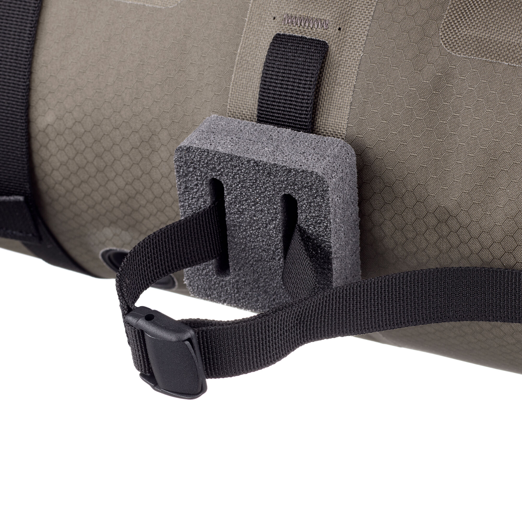 Kromě toho je brašna na řídítka vybavena čtyřmi háčky, které umožňují připevnit brašnu ORTLIEB Accessory Pack a získat tak další úložný prostor. Montážní systém, který se skládá z distančních prvků a dvou pevných pásků na suchý zip, zajišťuje bezpečné upevnění na jakýkoli typ řídítek, včetně karbonových. Vyztužený vnitřek batohu a upevnění na hlavové trubce poskytují dodatečnou stabilitu v jakémkoli terénu.