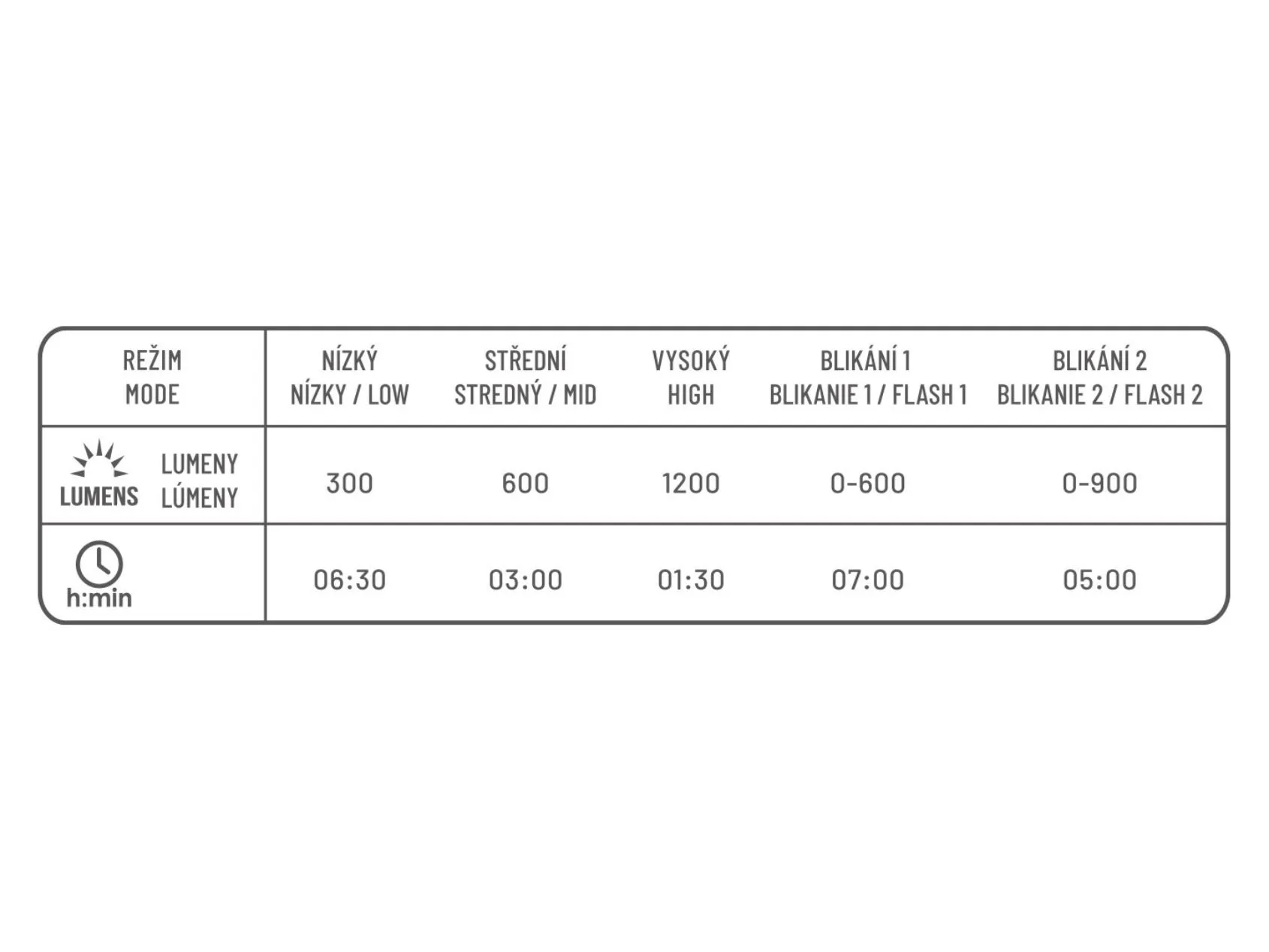 Maximální světelný výkon 1200 lumenů
