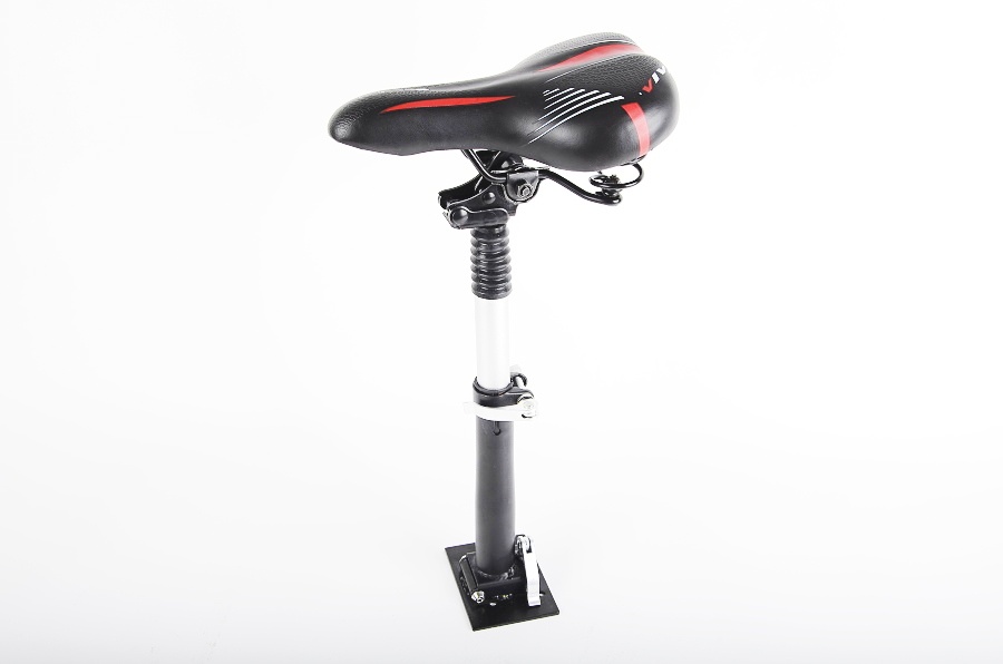 I namontované sedlo lze spolu s koloběžkou sklápět, takže vás neomezuje ani při přenášení koloběžky. Sedlo je vícenásobně odpružené (odpružené sedátko i sedlovka) tak, aby na něm byla jízda co nejpohodlnější.