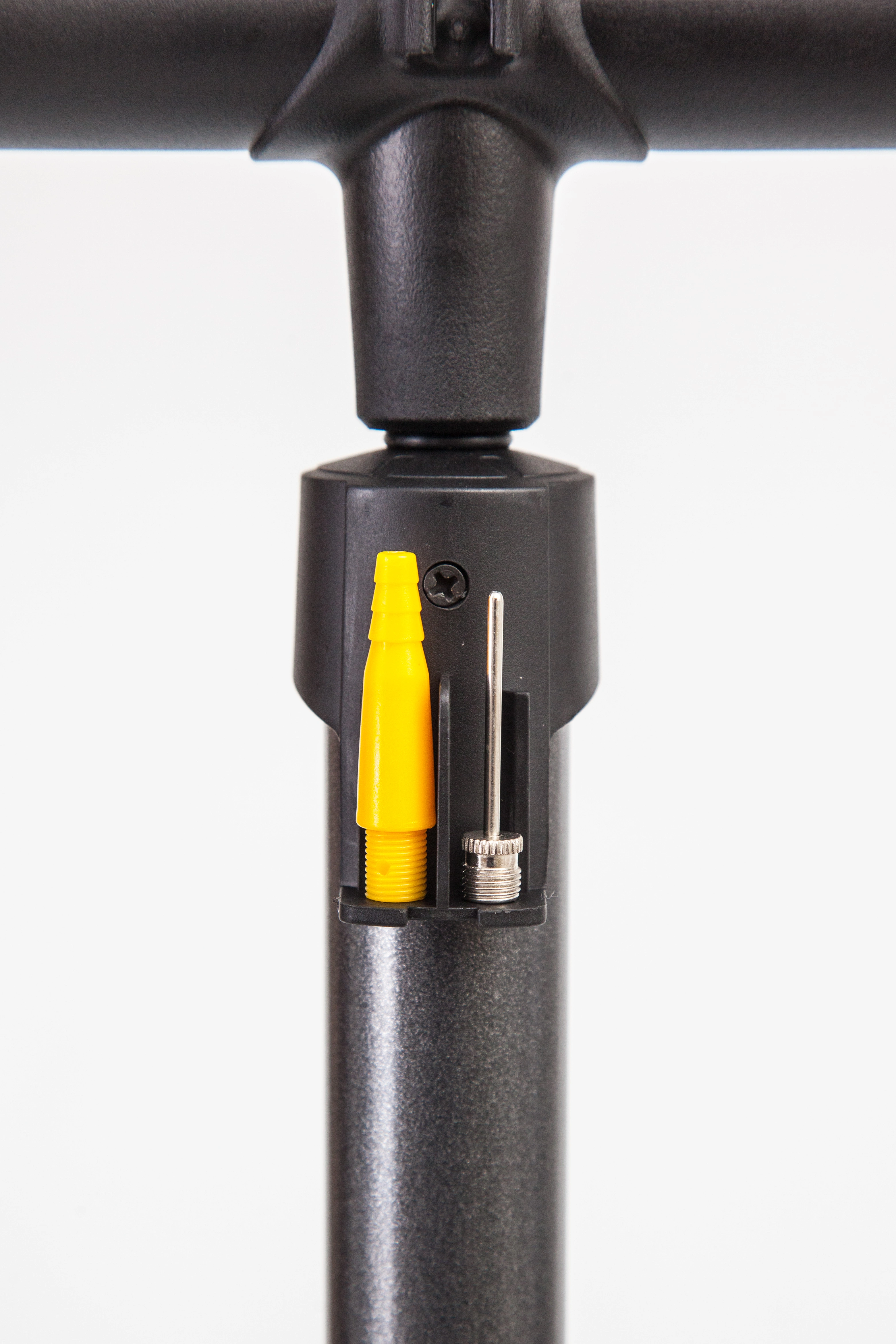 Nožní pumpa CRUSSIS disponuje kvalitním kovovým tělem, manometrem a součástí jsou i redukce pro nafukovací předměty.