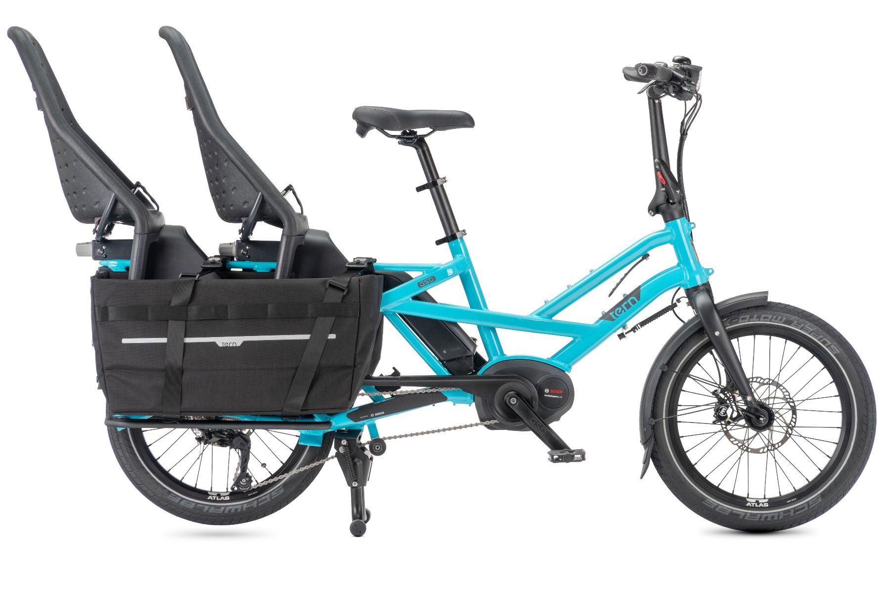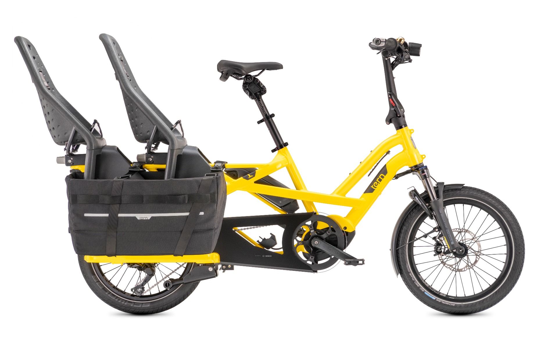 *Při použití s dětskou sedačkou je nutno použít styl otevřeného koše, možná bude třeba i adaptér na zadní brašny. Pokud jsou instalovány dvě dětské sedačky, je nutno nastavit styl otevřeného koše a použít dva adaptéry na zadní brašny (GSD využívá dvě sedačky Thule Yepp Maxi).