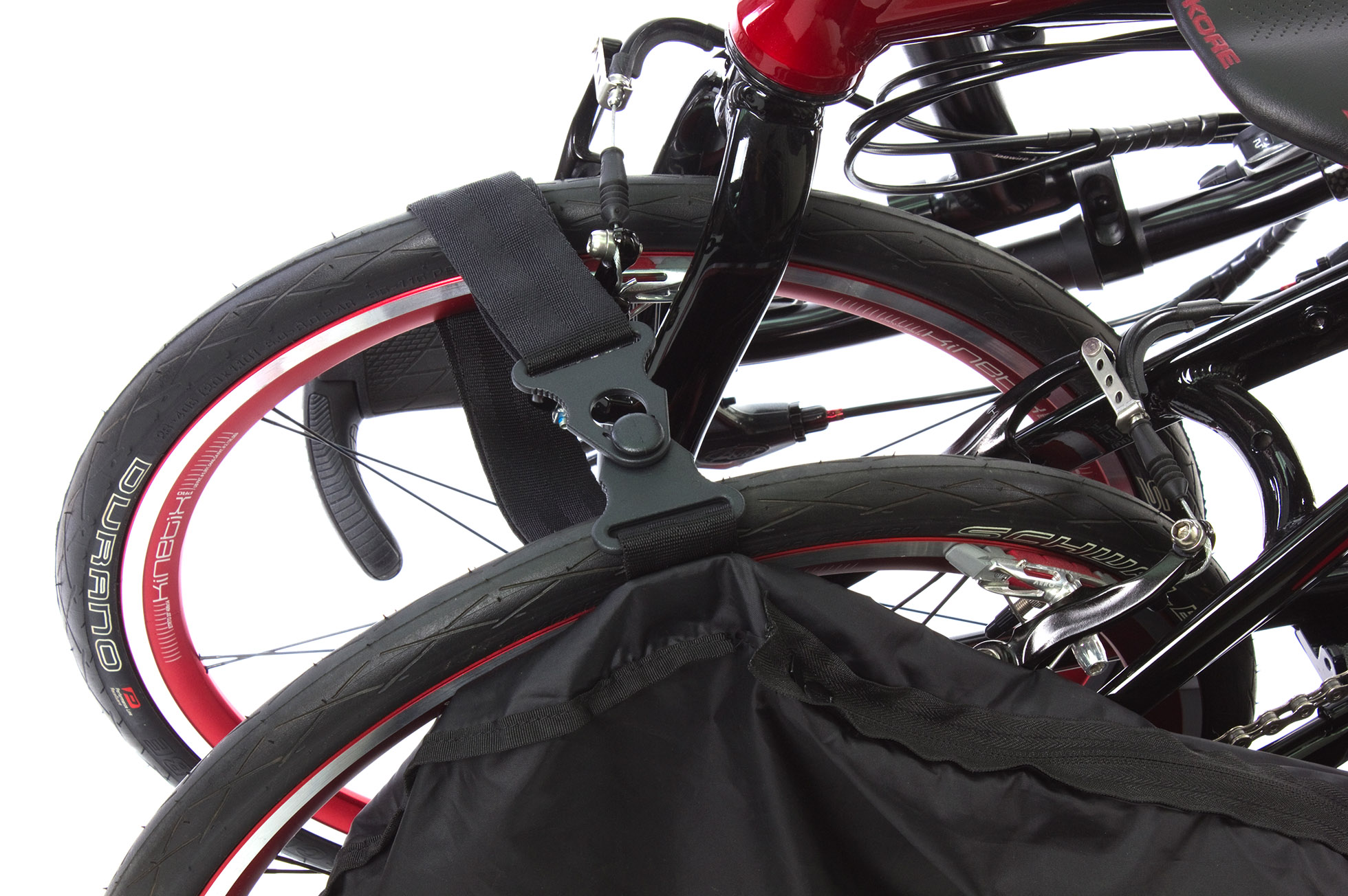 TIP! Pro skládací kola 20 a 24″. Pokud máte na 24″ skládačce velký nosič v kombinaci s držákem závazadel Truss, doporučujeme vyzkoušet, zda se skládačka do obalu vejde. Není určena pro kola BYB.