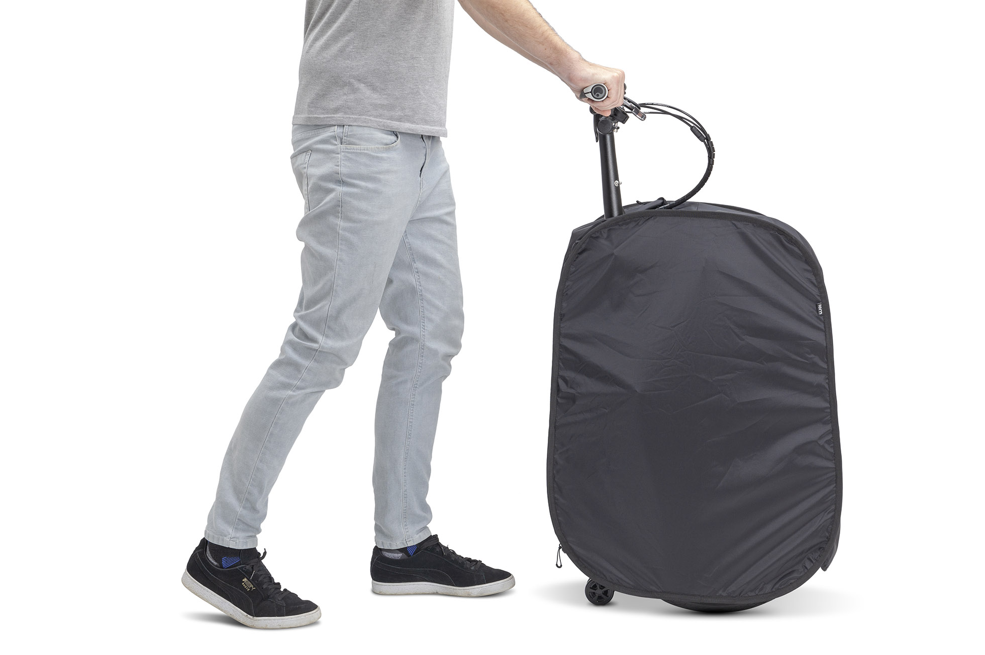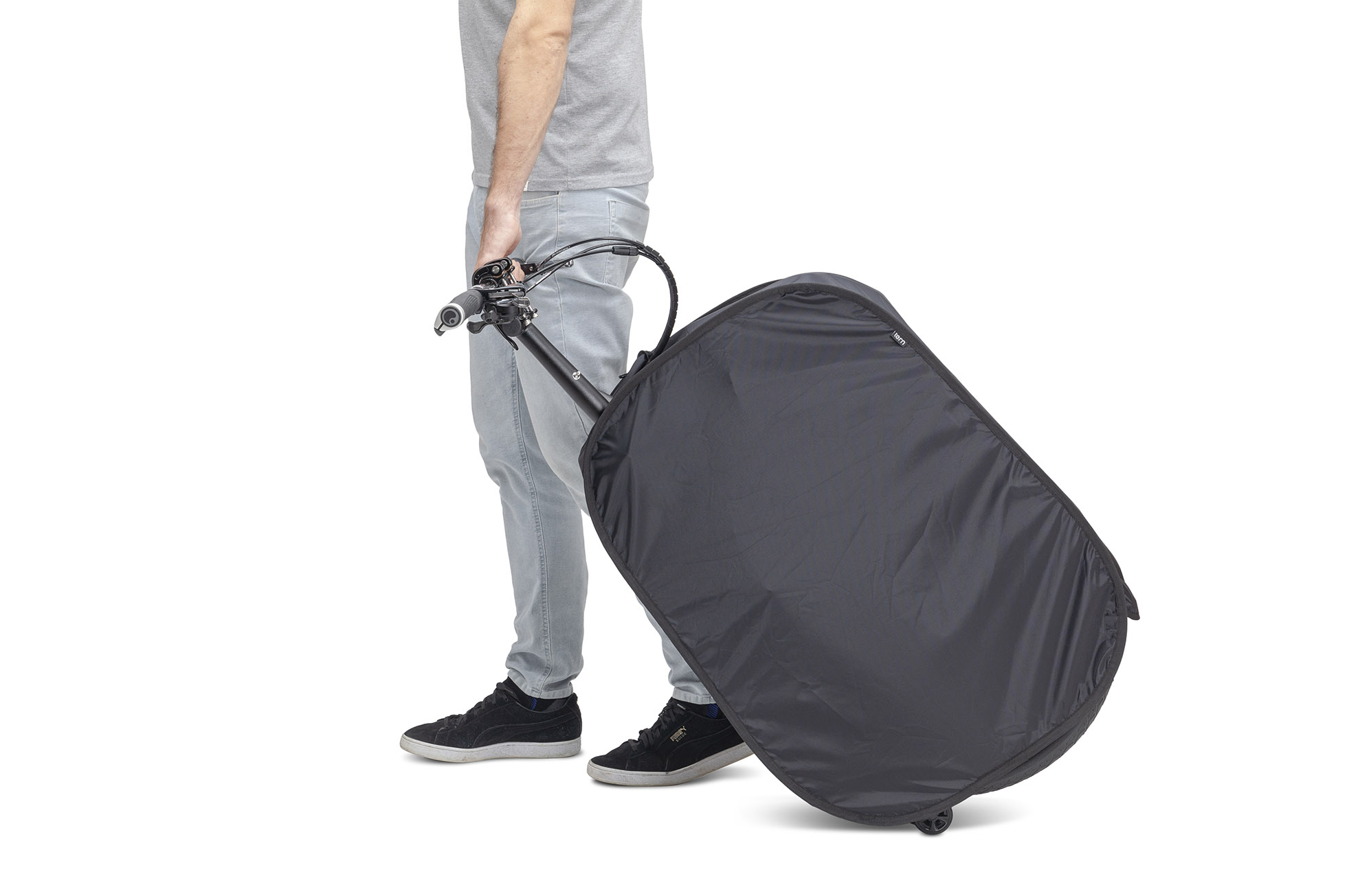 Tento obal je ideálním pomocníkem pro lidi, kteří kolo potřebují často zabalit do nejrůznějších dopravních prostředků. Stačí jej vytáhnout z obalu a sám se okamžitě rozloží do potřebného tvaru. Během chvilinky jej pak natáhnete na kolo a můžete jej odnést, nebo táhnout za sebou jako kufr na kolečkách. Uschování obalu je stejně jednoduché. Stočte jej a uložte do ploché kapsy, kterou připnete na nosič Metro Transit.
