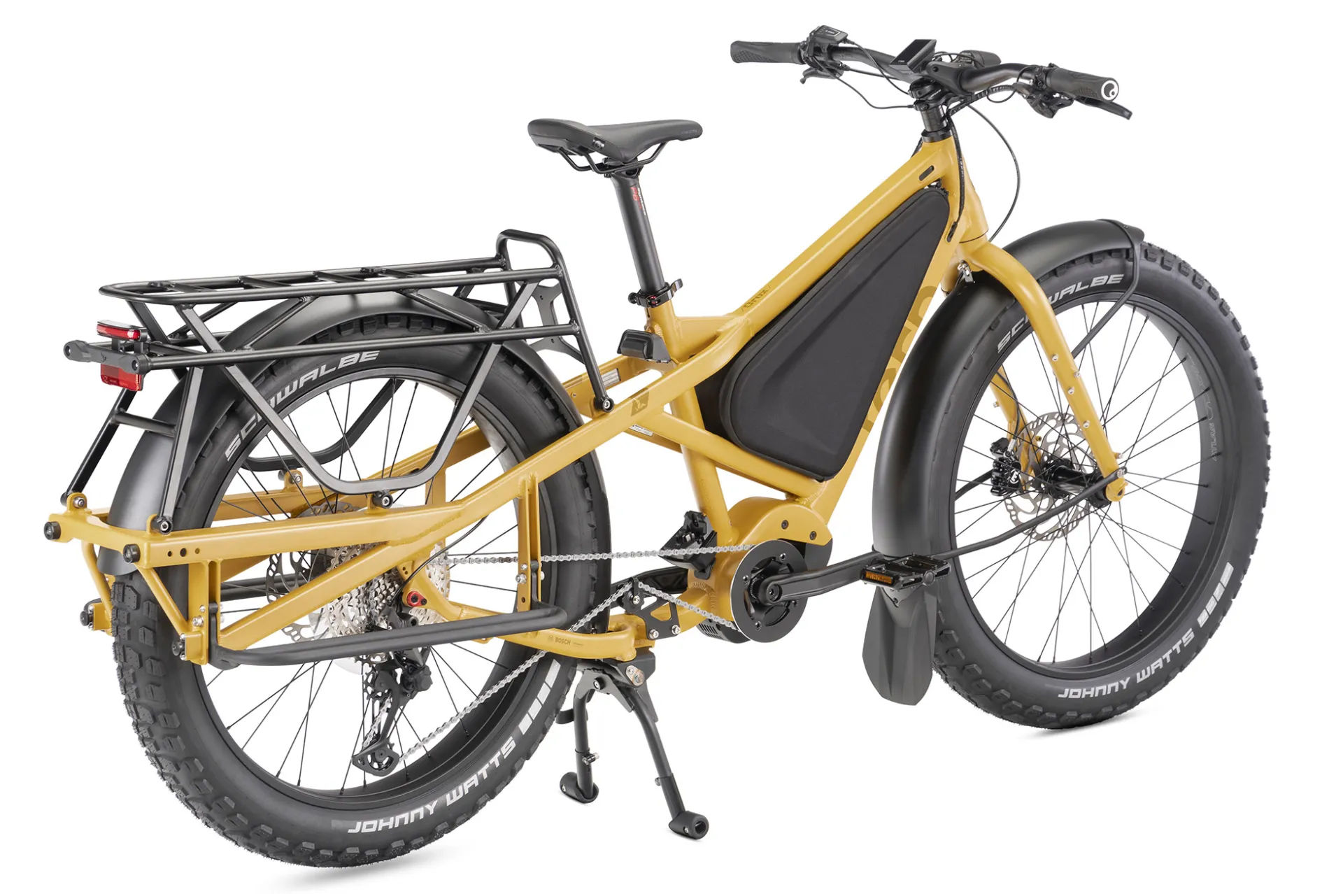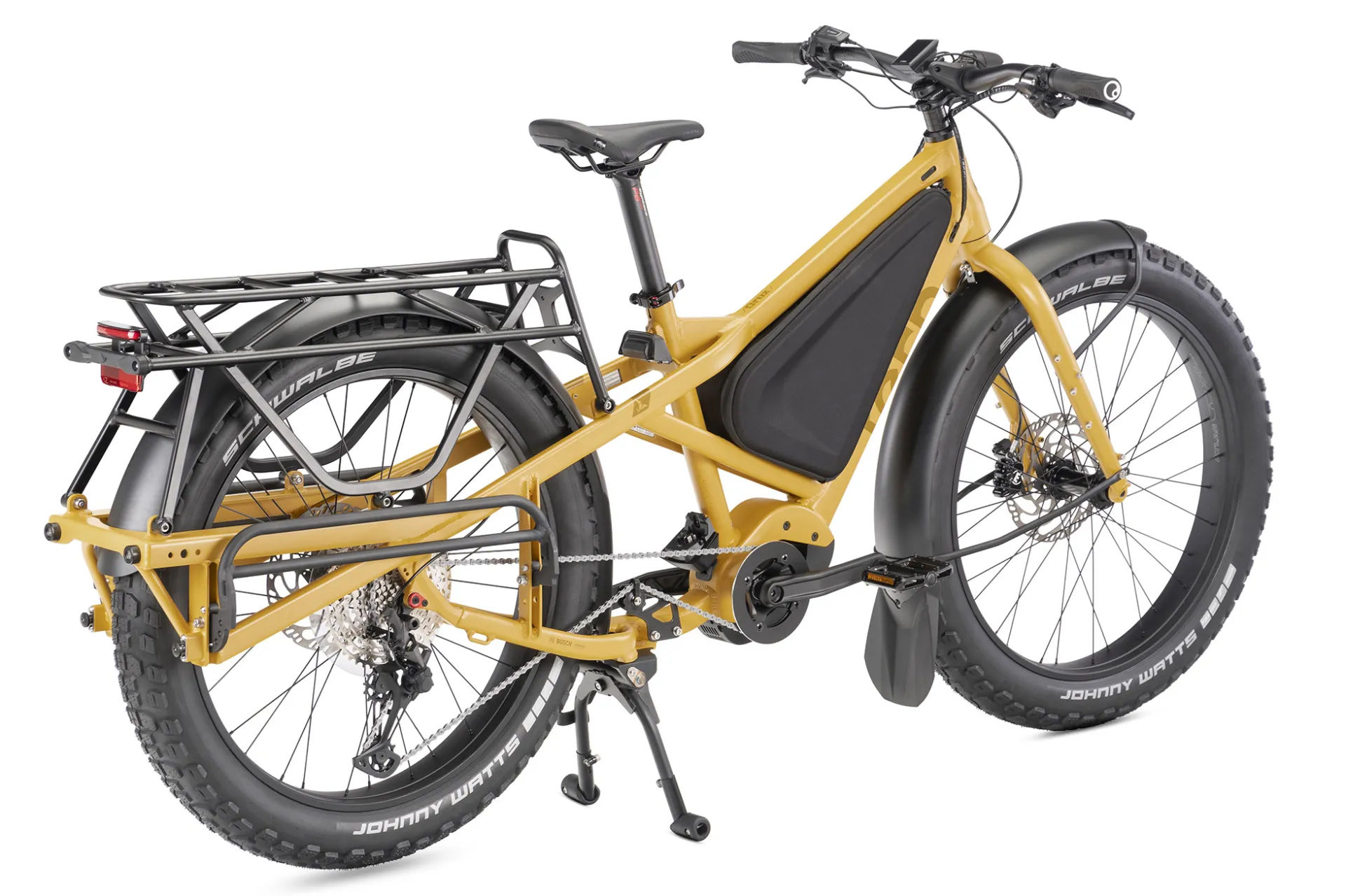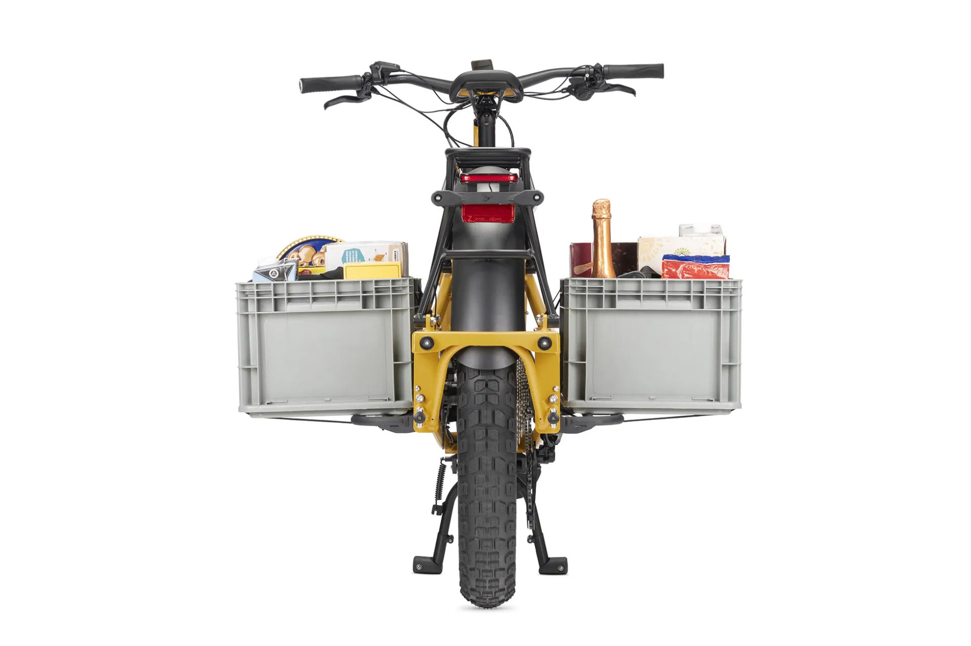 Stupátka Stow Deck můžete uzamknout pod různými úhly, aby podpíraly a udržovaly na místě zpola naplněné brašny, nebo je můžete zcela otevřít, aby si váš spolucestující mohl pohodlně odpočinout od nohou při šlapání do kopce. Pokud však cestujete spíše sami, proč nevyužít boční podpěry k tomu, abyste mohli převézt skládací křeslo, kempinkový gril a chladicí box plný jídla pro váš piknik?