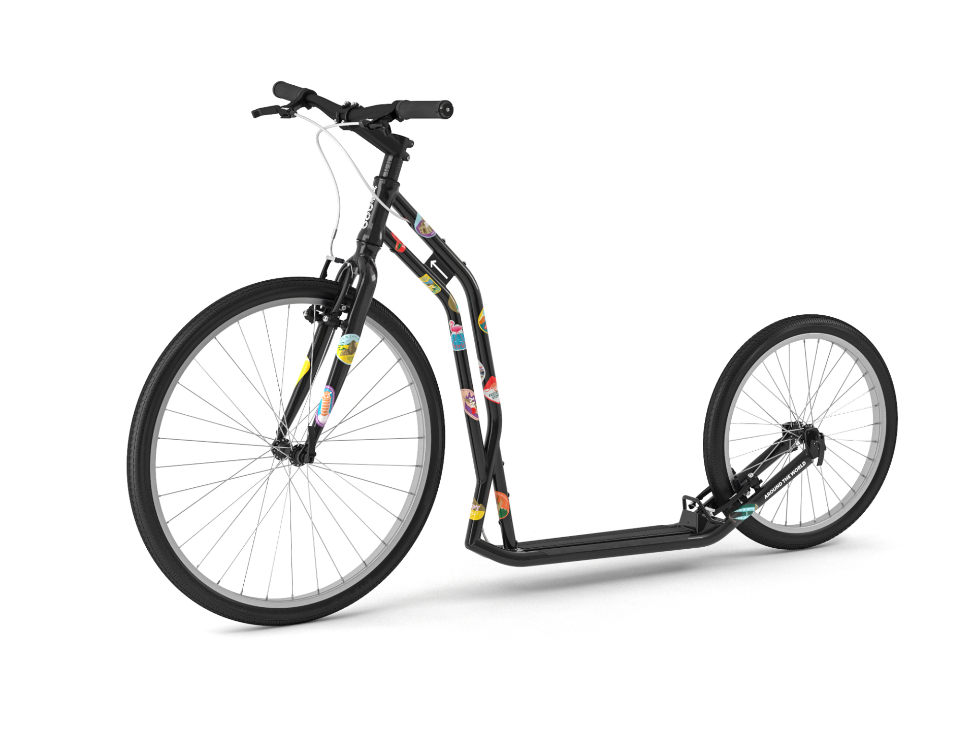 Cestovat se dá různě. Soukromým tryskáčem, prstem po mapě nebo se sbírkou samolepek z banánů – kombinaci nejmenší uhlíkové stopy a největšího zadostiučinění ale bezpečně zaručují jen dvě kola. Pohodlná, všestranná koloběžka Around the World 2620 nikde dlouho nevydrží, ale vydrží skoro všechno. Optimální pružnost rámu Steel i výška stupátka „tak akorát“ představují ideální start na kratší i delší výlety, nečekané nástrahy obrubníků, i dobrodružství za chalupou. Ať už jezdíte v myšlenkách kolem polárního kruhu, sníte o zdolávání zelených pahorků afrických nebo děravé městské dlažby. Místo sedmnácti tisíc kilometrů teď dělí Machu Piccu a Taj Mahal jen pár centimetrů a kousíček představivosti.
