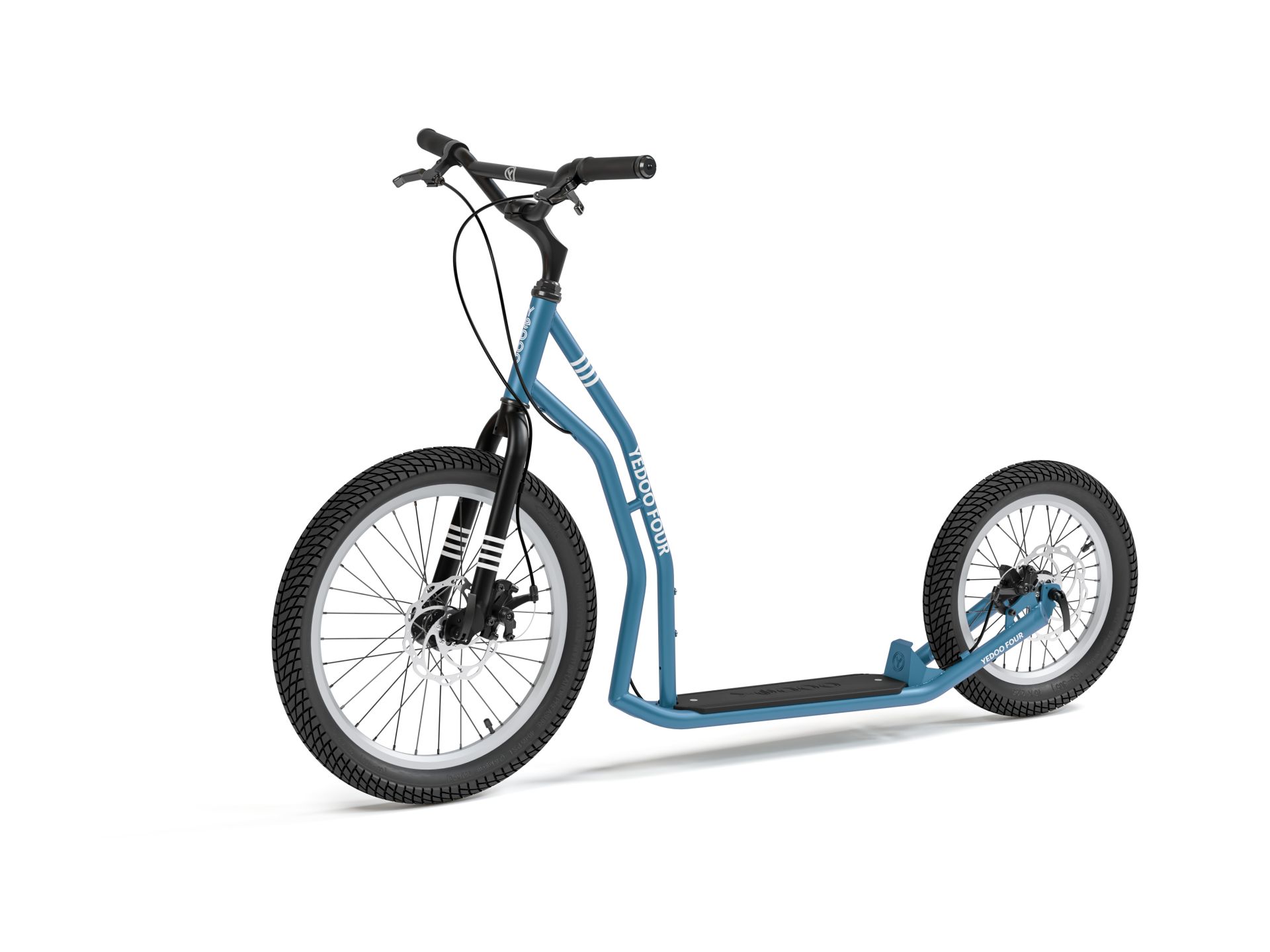 Vypadá nevinně, ale nenechte se zmást, tahle koloběžka je divoch stavěný na všechno. Čtyřka vám dá jistotu a možná i kapku adrenalinu, bez zbytečných kudrlin. Spolehlivé komponenty a veškerá technologická převaha dvacetileté tradice značky Yedoo poskytují takřka nezničitelnému stroji suverénní rychlost a pohyblivost v městské džungli – a vlastnosti 4×4, jakmile se vysvobodíte z předměstí.