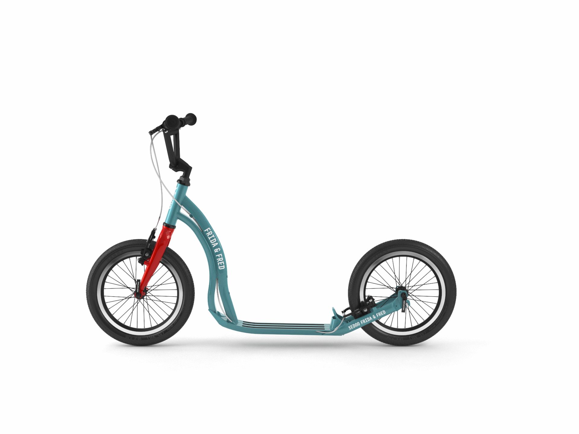 Dítě nebo dospělý? Holka nebo kluk? Zábava nebo závod? Frida & Fred! Mladší verze Friday, „nejstylovější koloběžky na světě“, je ještě lehčí a ještě krásnější, a navíc o něco kratší a tudíž i skladnější – obratná jako gymnastka. Ráno udělá parádu před školou, soutěže končí jedině na bedně a večer je z ní královna plesu. Dvě velká, rychlá kola proměňují i sedavé typy v atlety a potom už jen v tečky na horizontu… Sobotní výlet s rodiči je v cíli, než řeknete borůvkový koláč. Kde se šouráte, loudalové! Ale pozor, po vyjížďce se o koloběžku začnou dospělí podezřele zajímat a v neděli ji nebudou chtít vrátit. Nic se neděje, s nosností 120 kg vás v nejhorším případě uveze oba dva. A s výměnnými řídítky pro dospělé vydrží na celý život. Taková koloběžka po zeměkouli ještě nejezdila.